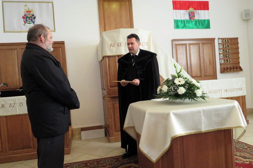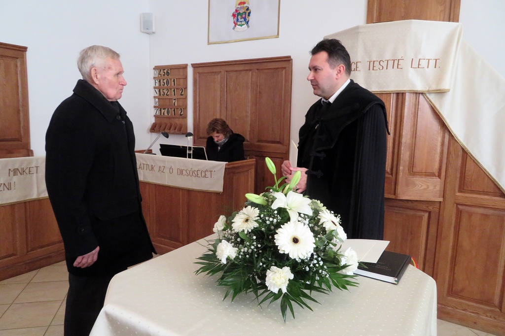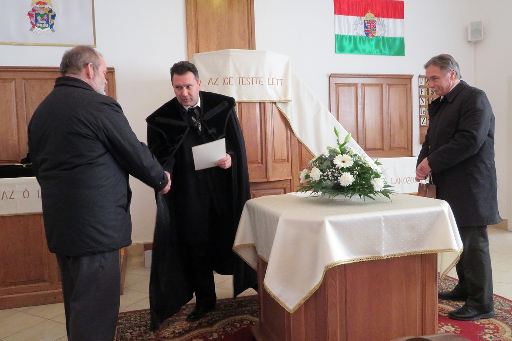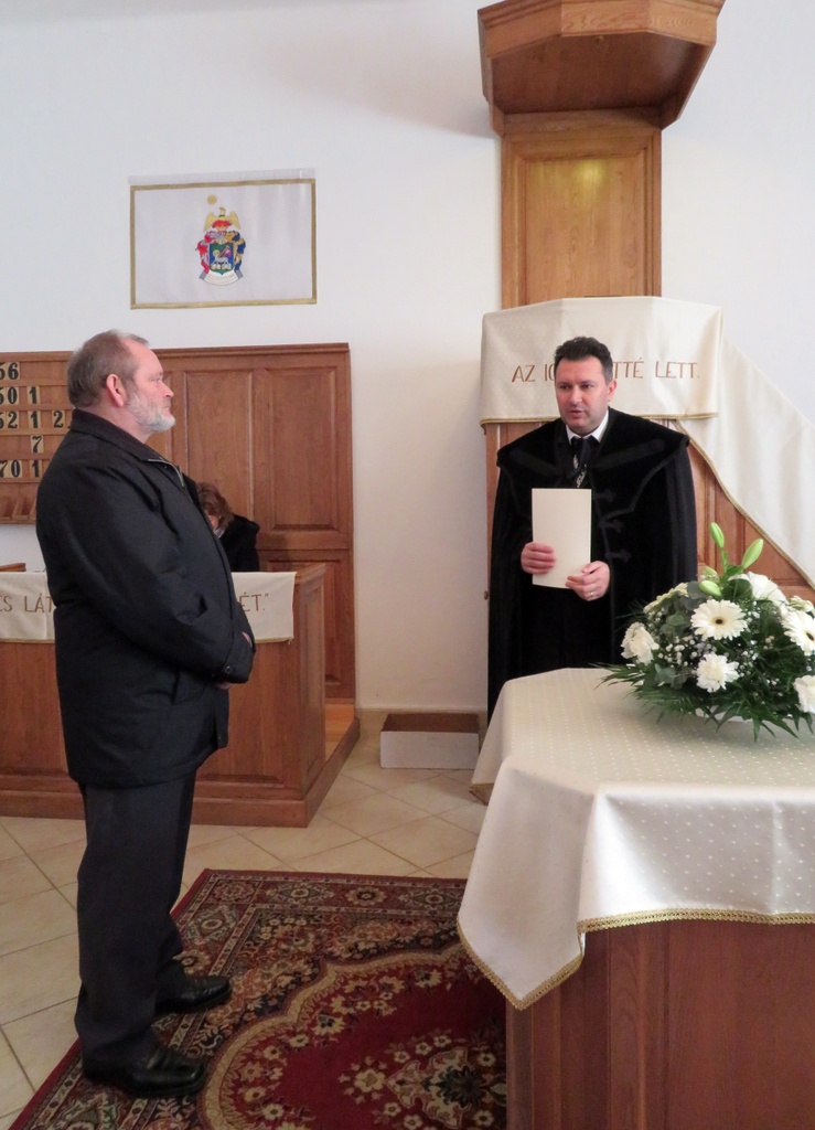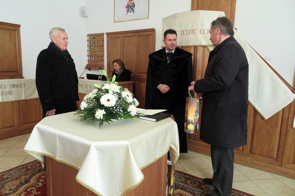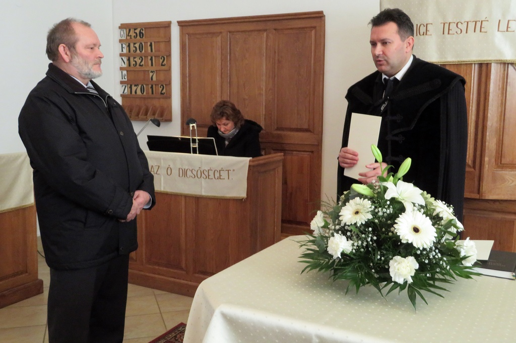 Nem magától értetődő dolog az, ha valaki presbiteri szolgálatra nyert elhívást, és ezt hittel vállalja. Isten kegyelmének és szeretetének jele ez a megbízatás. Viszont amikor eljön a szolgálati idő vége, alkalmunk van visszatekinteni, és köszönetet mondani. Így köszöntöttük vasárnapi istentiszteletünkön azt a három presbiter testvért, akik már nem vállalták tovább ezt a szolgálatot. Drótos András 1990, Tóth János 1999, Rozgonyi István 2006 óta szolgált gyülekezetünkben presbiterként. Major Zsolt lelkipásztor és Deák Pál gondnok egy-egy emléklap és ajándék átadásával köszönte meg a gyülekezet nevében a leköszönő presbiterek sok éves hűséges munkáját és szolgálatát, és további jó egészséget és áldást kívántak életükre.