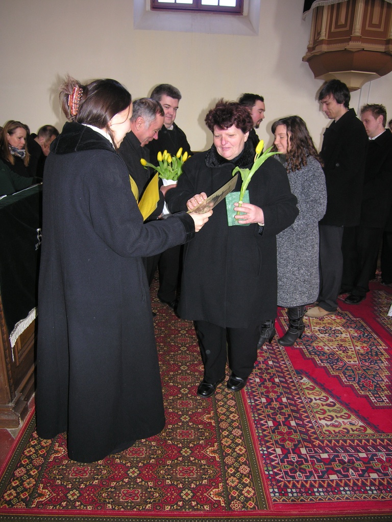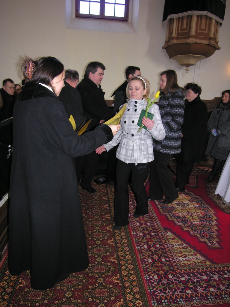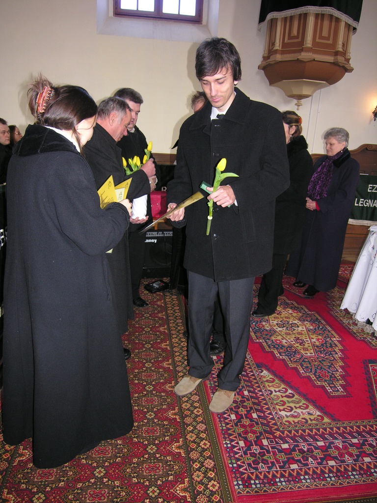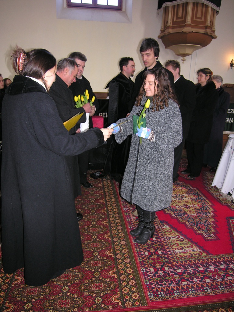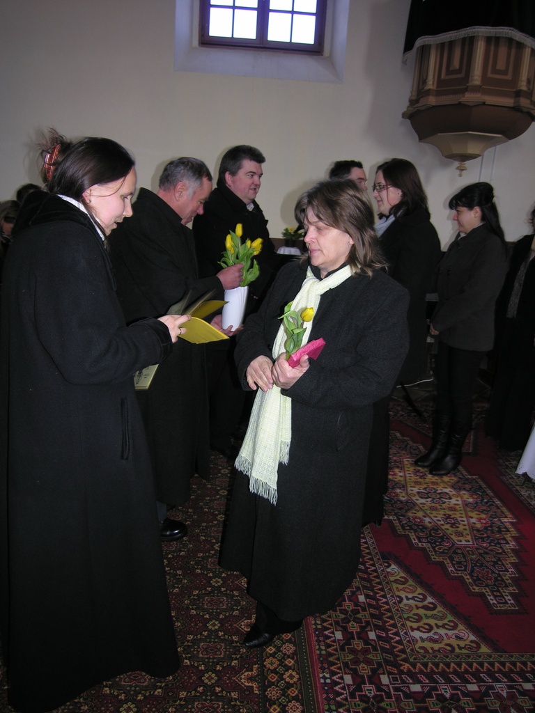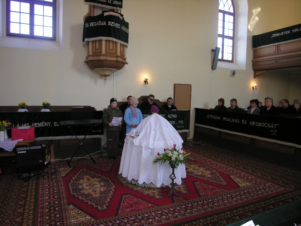 A családi napköziben és a házi segítségnyújtásban dolgozók tették le az esküjüket. Az istentisztelet a megszokott időben kezdődött délelőtt 09:30-tól. Az ünneplő gyülekezetett és a fogadalomtételre váró dolgozókat nemcsak a kicsik köszöntötték, hanem a gyülekezet énekkara és a fiatalsága is. A keresztség sákramentumában részesült Fidrus Hunor Gábor, aki a családi napközibe járó gyerekek közzé tartozik. Az istentiszteleten az igét Dani László hirdette, aki a Magyarországi Református Egyház Zsinati Hivatalának, Szeretetszolgálati Iroda munkatársa. A fogadalomtételt pedig Czibere Károly vezette le, aki úgyszintén a Magyarországi Református Egyház Zsinati Hivatalának Szeretetszolgálati Iroda vezetője. A polgármester úr is köszötötte a dolgozókat. A 18 dolgozó eskütétele után a gyülekezet úrvacsorában részesült. A böjti istentisztelet után szeretetvendégségen vehettek részt a vendégek.