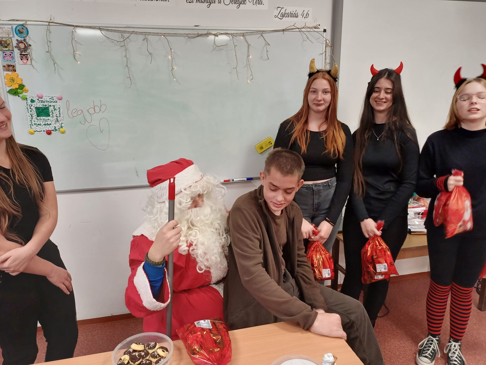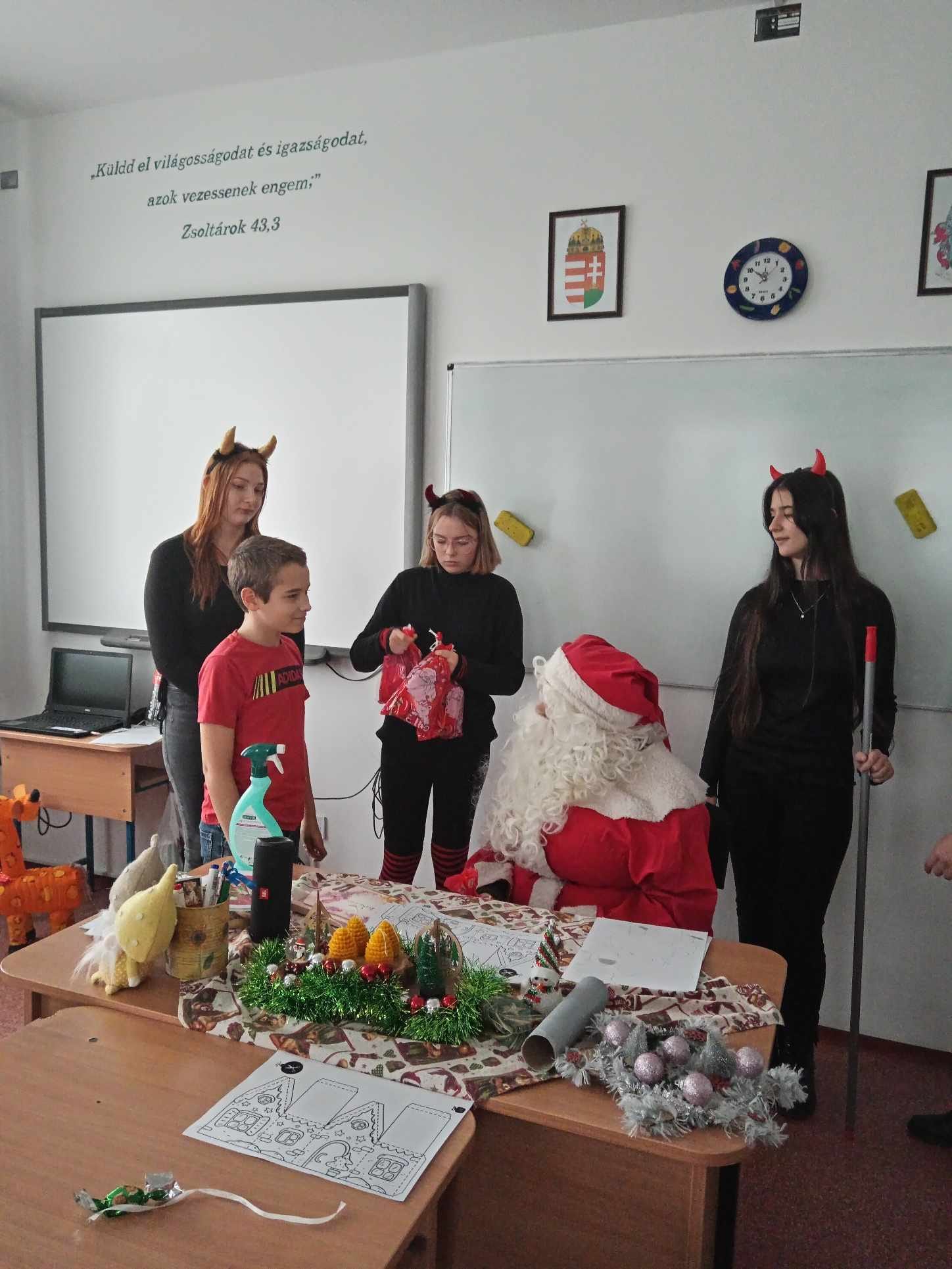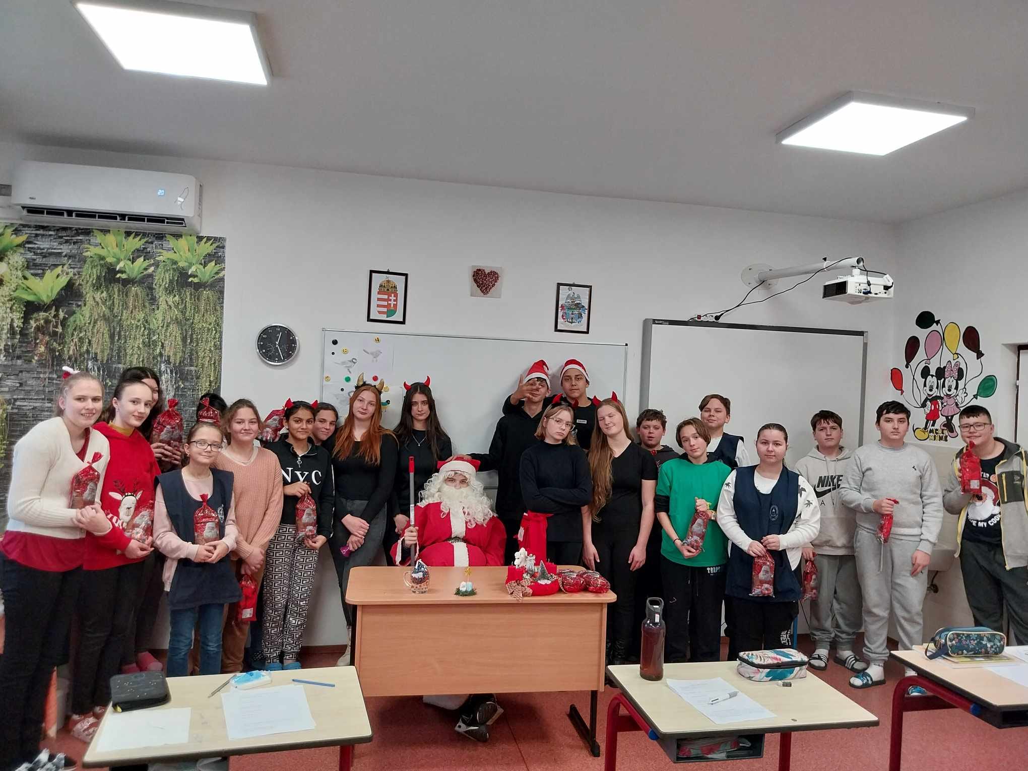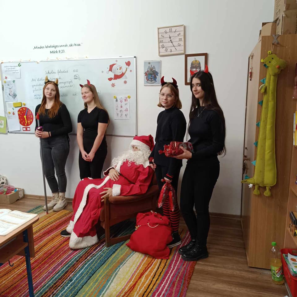 Ma a Mikulás és segítői, a manók és krampuszok ellátogattak iskolánkba és óvodánkba is. A gyerekek nagyon várták, hogy megkapjàk csomagjaikat, amit pár kedves kérdés után meg is kaptak. A délutánt diszkóval zártuk, amelyen nagy élvezettel és önfeledten táncolták ki magukból a sok-sok tanulást. Köszönjük a buli szervezését a Diákpresbitériumnak!