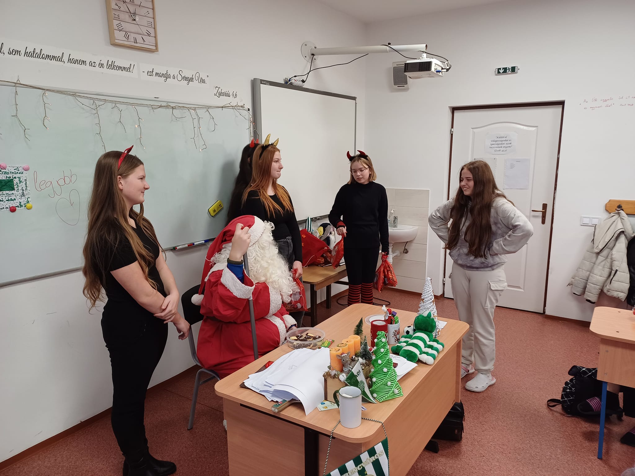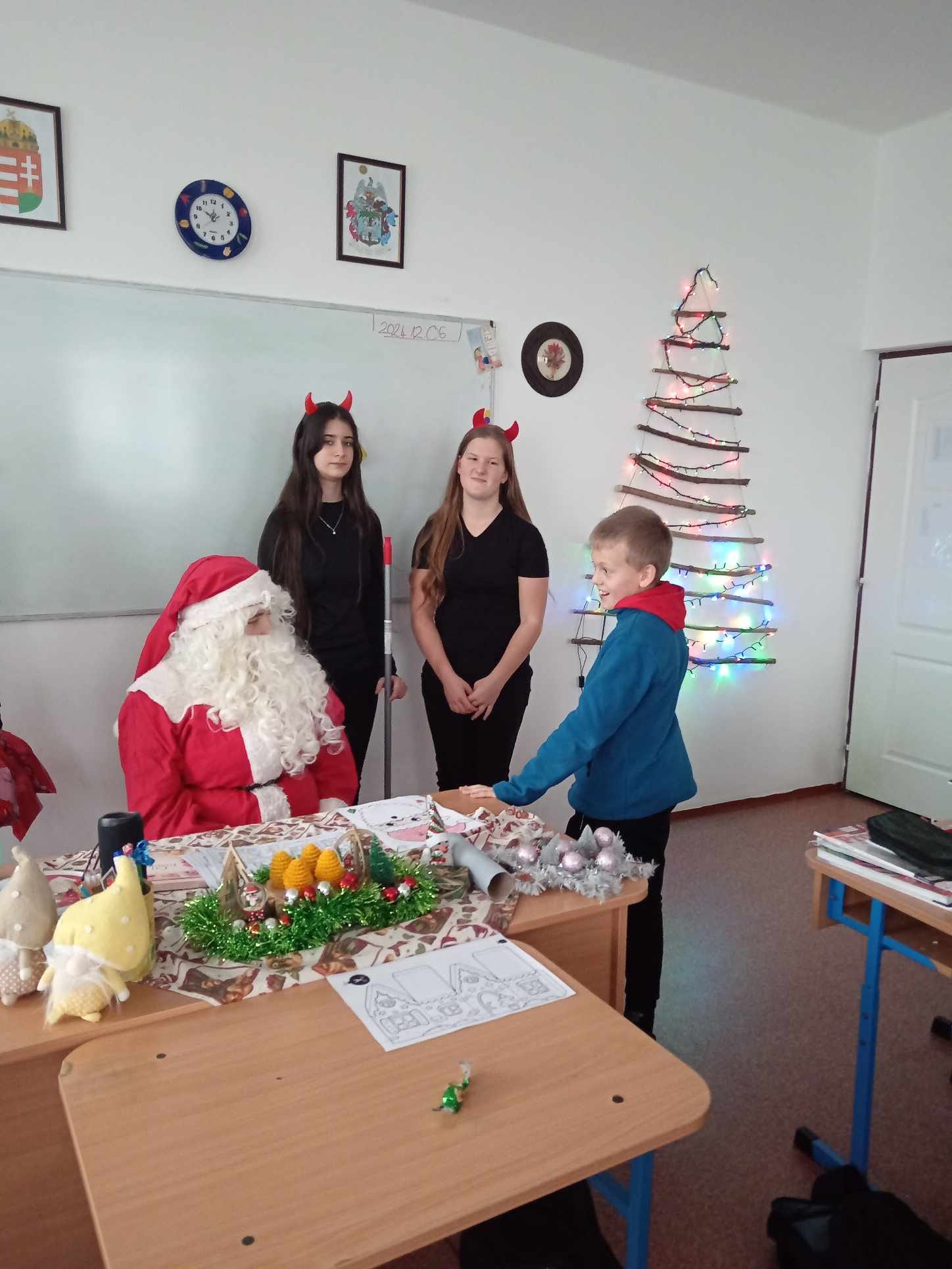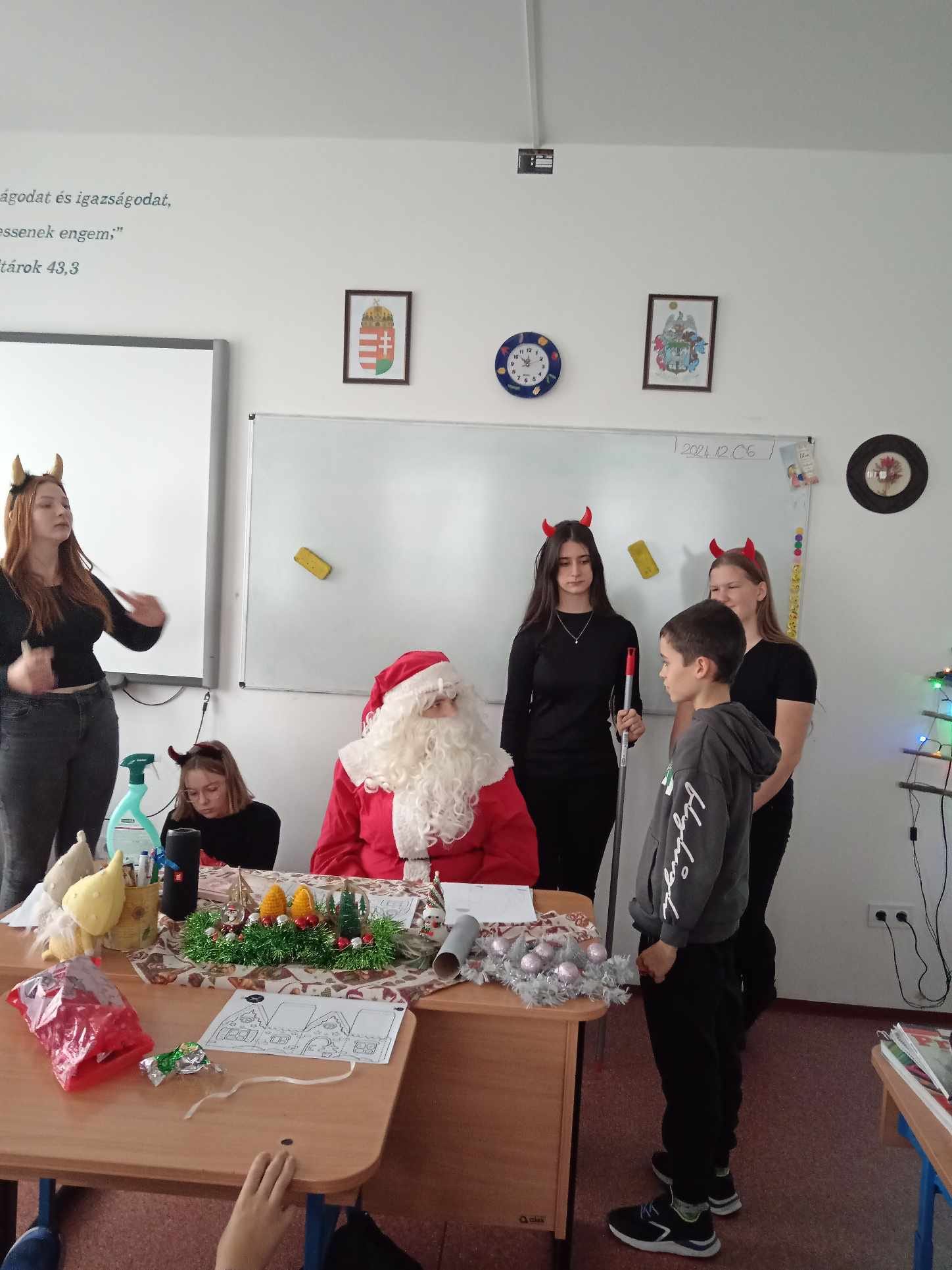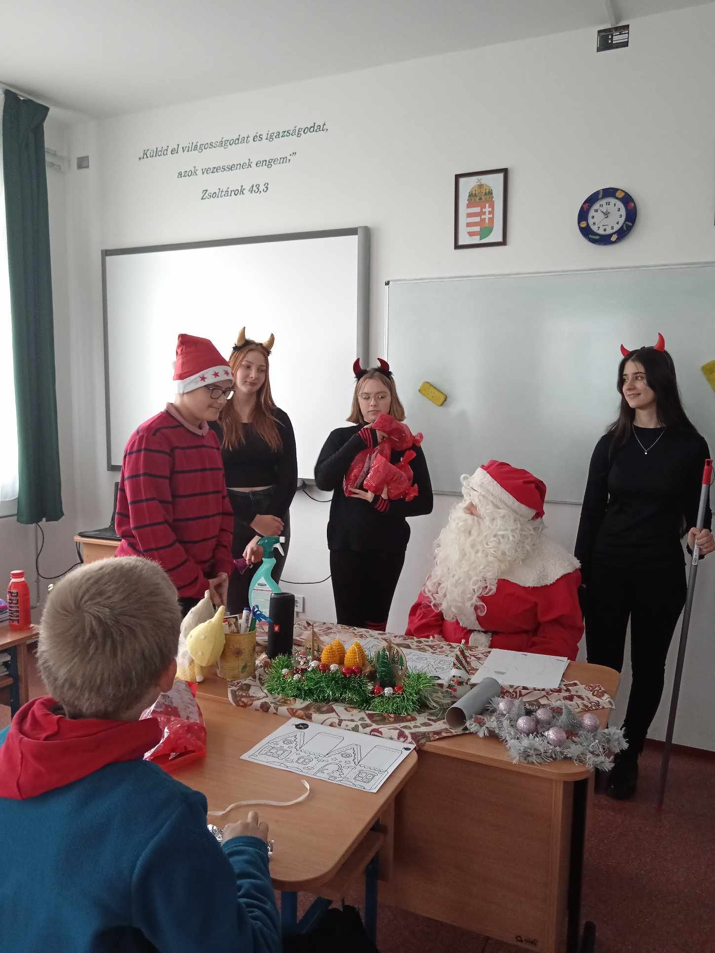 Ma a Mikulás és segítői, a manók és krampuszok ellátogattak iskolánkba és óvodánkba is. A gyerekek nagyon várták, hogy megkapjàk csomagjaikat, amit pár kedves kérdés után meg is kaptak. A délutánt diszkóval zártuk, amelyen nagy élvezettel és önfeledten táncolták ki magukból a sok-sok tanulást. Köszönjük a buli szervezését a Diákpresbitériumnak!