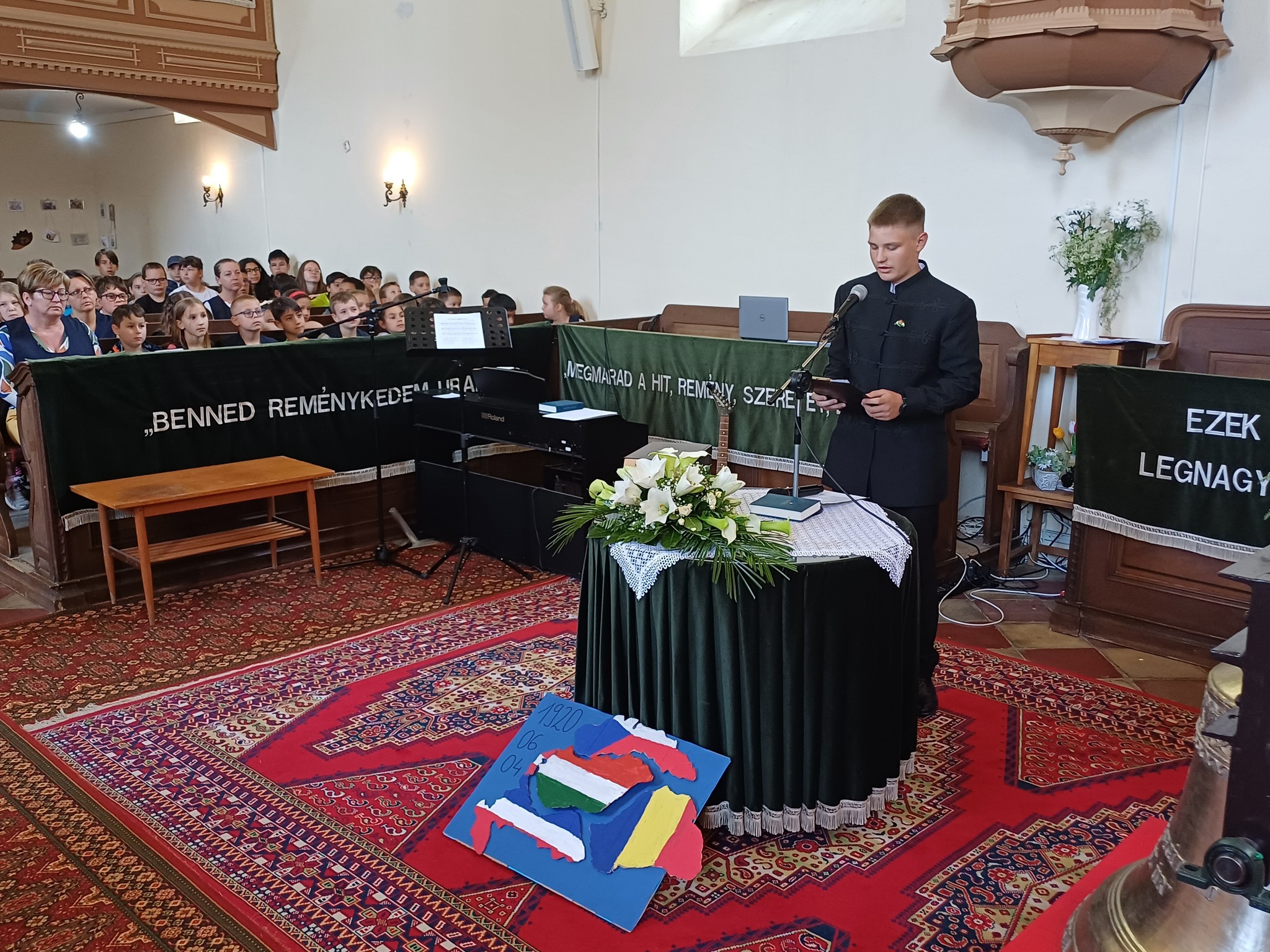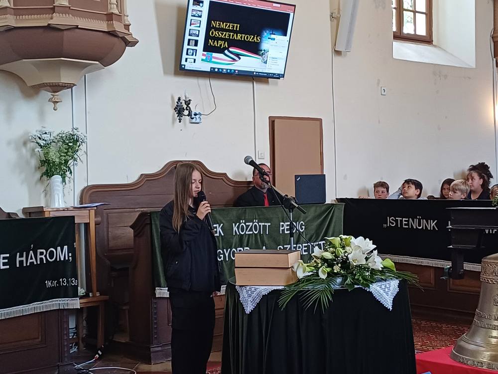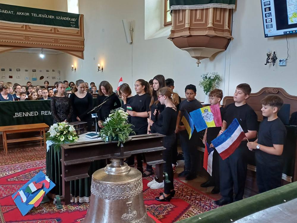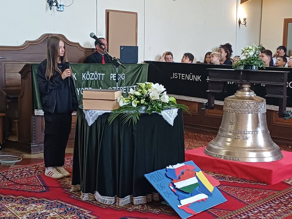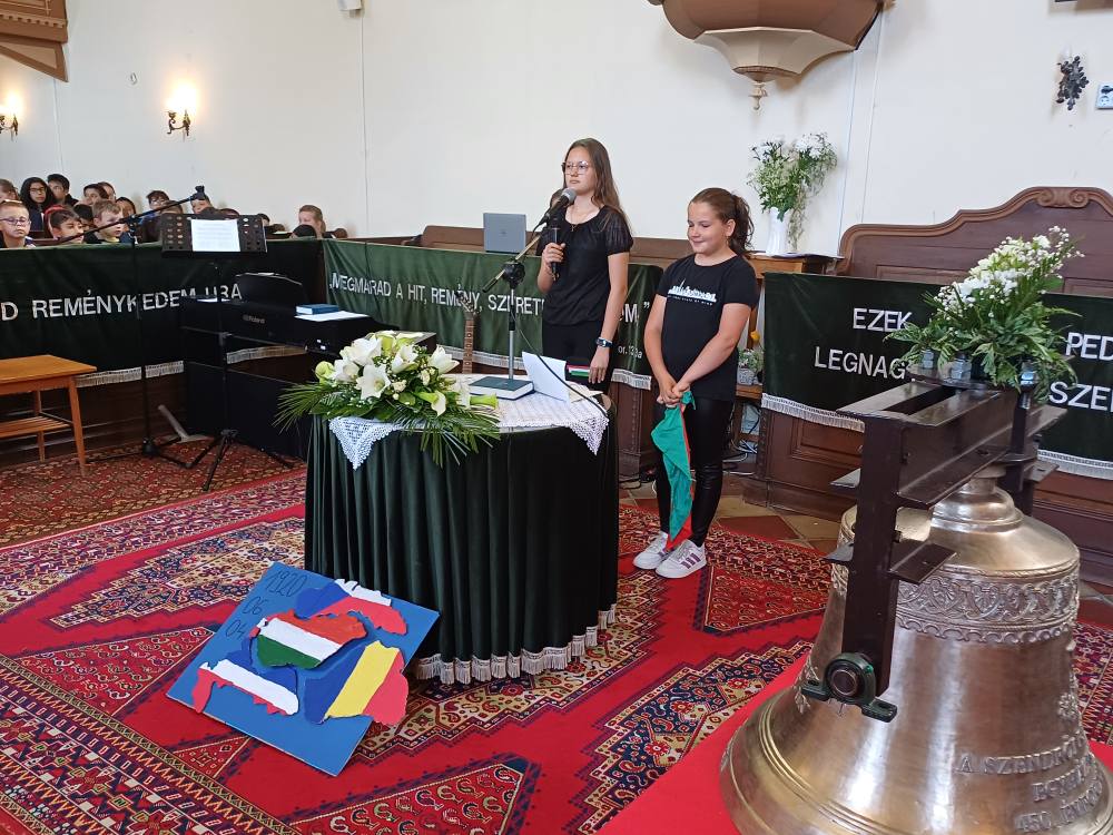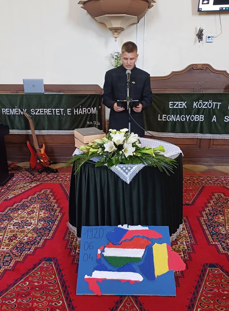 "Miért mondjátok nekem: Uram, Uram - ha nem teszitek, amit mondok?" Lukács 6,46 A mai napon iskolánk 6. osztályos diákjai emlékeztek meg a trianoni békediktátum aláírásának 105. évfordulójáról. Nt. Benke András áhítata után, a gyerekek versekkel, kendős tánccal és énekkel hozták közelebb diáktársaik felé ennek a szomorú napnak a jelentőségét. Ezt követően Ferencz Zoltán Botond, 8. osztályos tanulónk olvasott fel egy fogalmazást, amelyet sajákezűleg, önállóan írt meg. A gyerekek szereplését iskolánk főigazgatója, Szegőné Bene Anita köszönte meg! Köszönjük a felkészítést, valamint a gyerekek szolgálatát!
