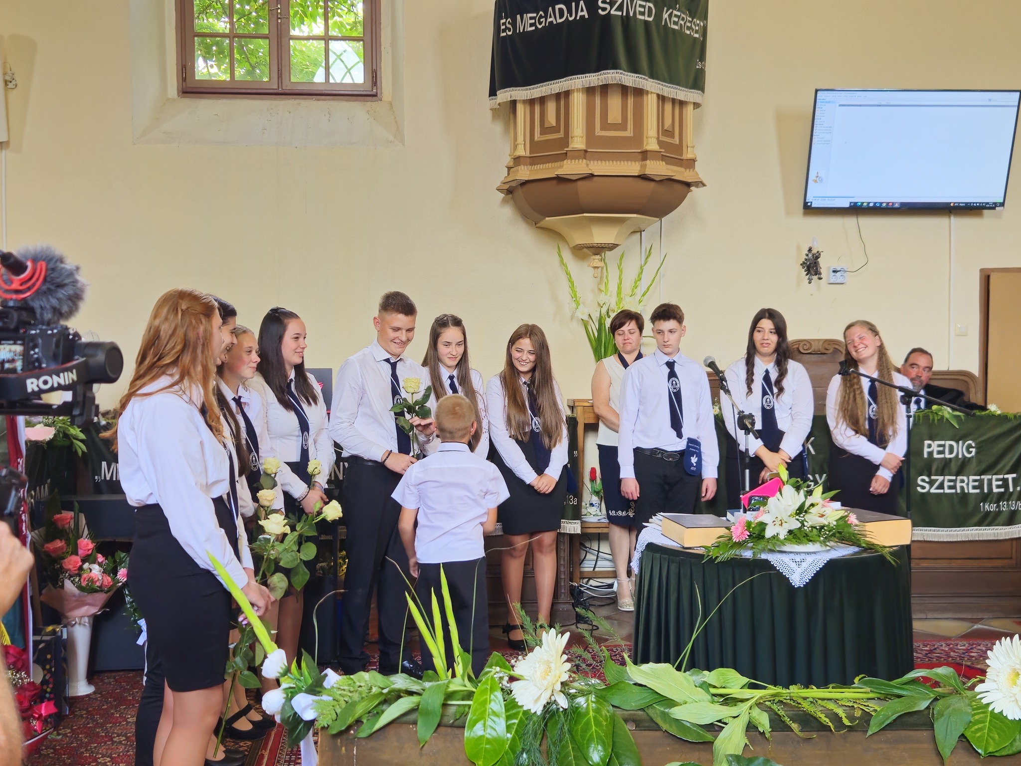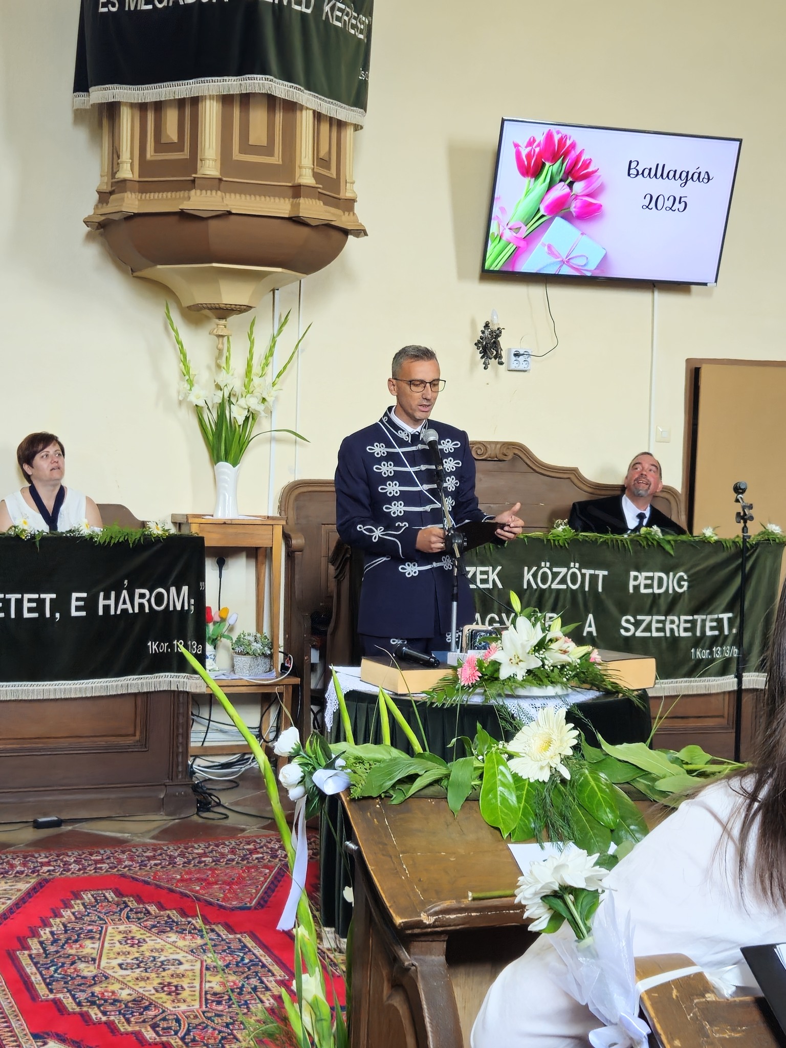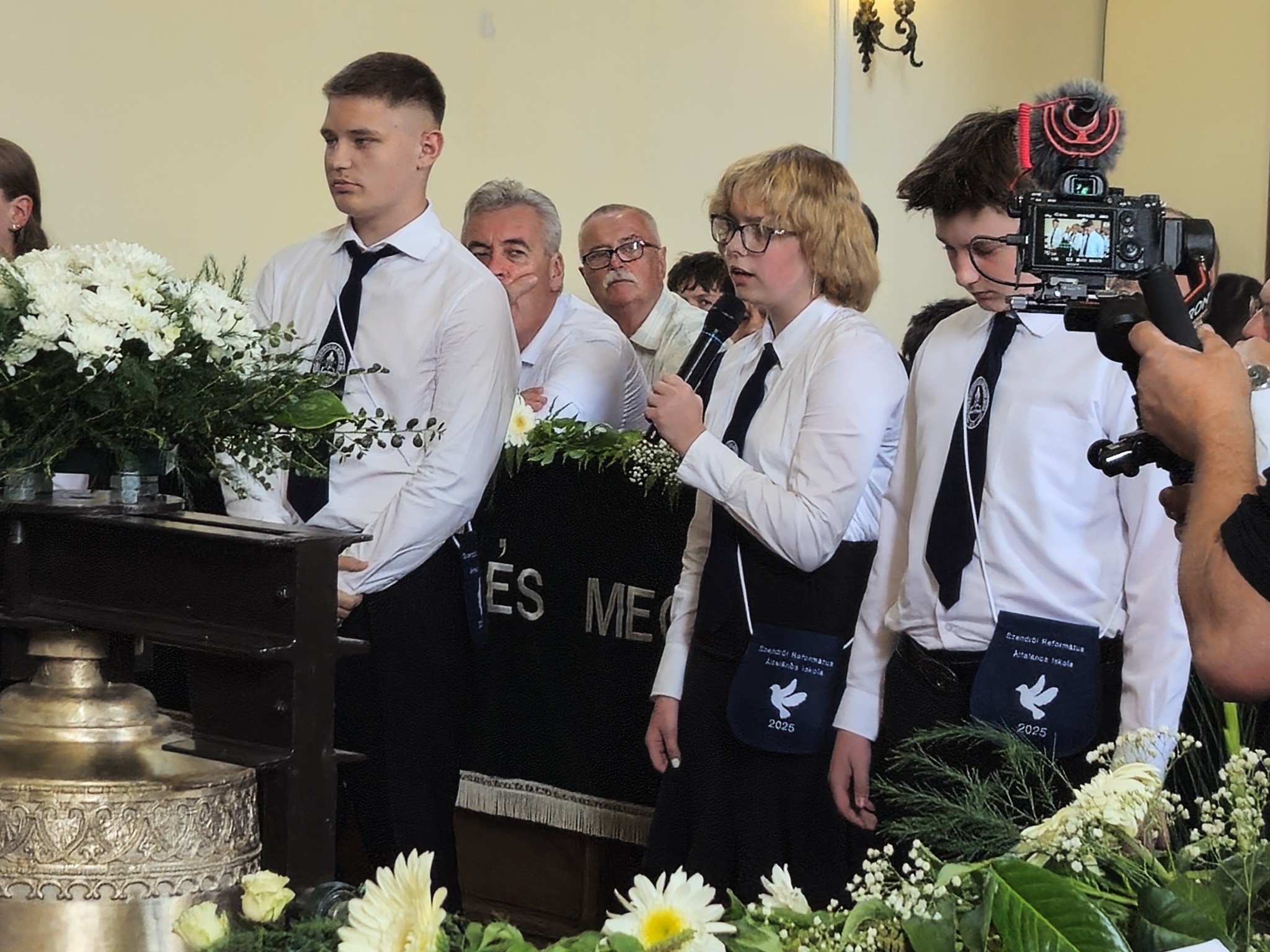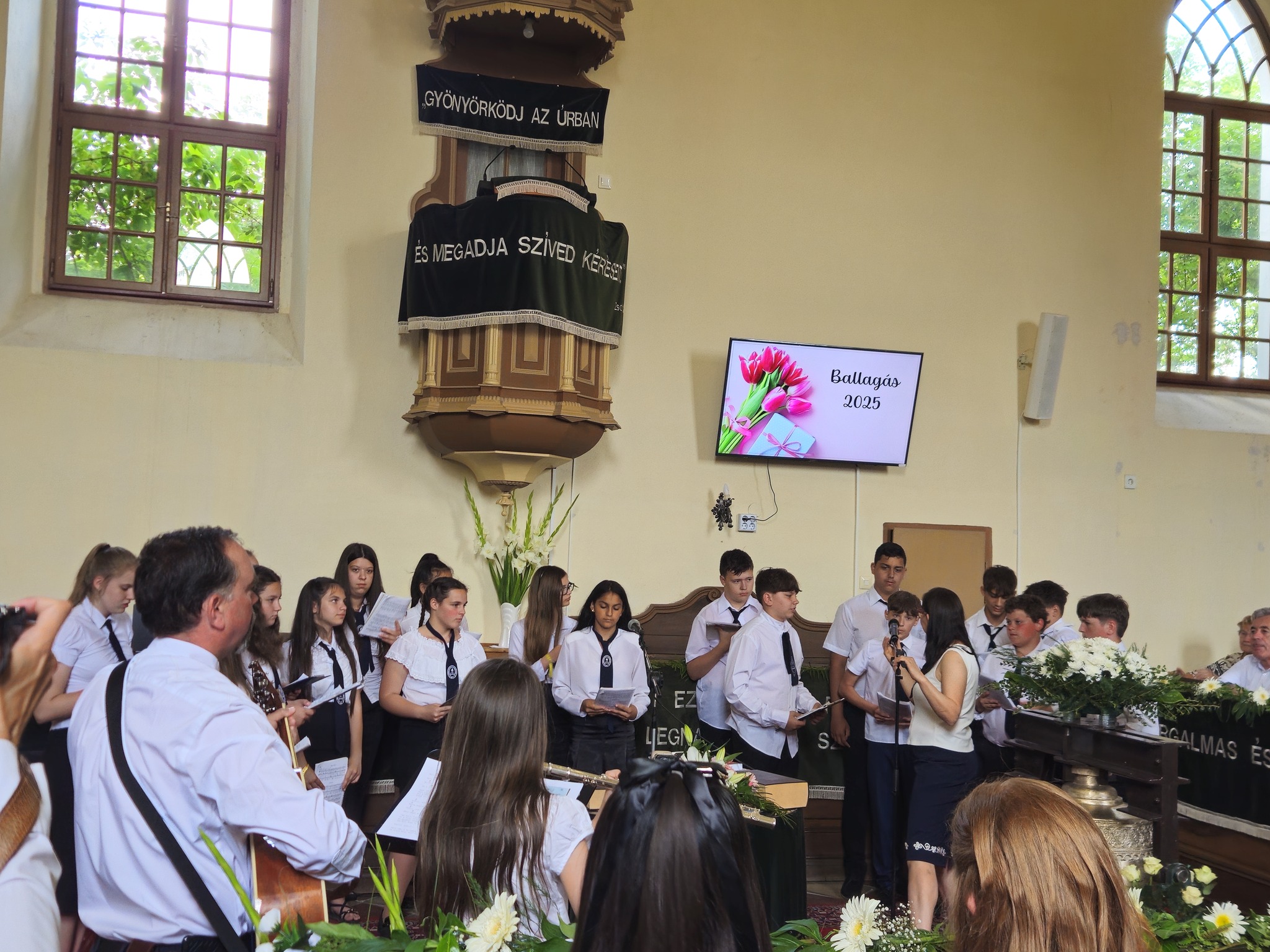 "Mindeddig megsegített minket az Úr!" 1Sámuel 7,12 Újabb évfolyam ballagott iskolánkból a tegnapi napon. Az ünnepi istentiszteleten idén is tele volt a református templom, hiszen egy újabb mérföldkőhöz ért 16 diákunk. Iskolánk zászlójának átadását követően, Nt. Benke András igehirdetését hallgathattunk meg, majd iskolánk főigazgatója, Szegőné Bene Anita, valamint a ballagók osztályfőnöke, Kujan Szabolcs köszönt el a diákoktól. Mindkét személy nagyon szívhez szóló és érzelmekkel teli mondatokkal jelezte a tanulóknak, hogy mennyire fontos és értékes diákjai voltak intézményünknek. Ezt követően a pedagógusok éneke következett, amely ezúttal egy átírt Edda dal volt, mégpedig az Elhagyom a várost című ikonikus sláger. A 7. osztályosok két énekkel, köszönettel és hálatelt szívvel búcsúztatták a ballagókat, tudva azt, hogy a következő tanévben már ők fognak ott állni, ahol most idősebb iskolatársaik álltak. A 8. osztályosok is nagyon megható, olykor vidám pillanatokat szerző, olykor pedig komoly és könnyfacsaró műsort adtak elő, amellyel méltóképpen hagyták maguk mögött általános iskolás éveiket. A diákok nevében Filó Norina búcsúzott a pedagógusoktól, iskolatársaktól és a szülőktől egyaránt, akik ezt követően állhattak ki gyermekük elé, és köszönhették meg mindazt a nyolc esztendőt, amelyet együtt tölthettek iskolánk falai között. Első osztályosaink egy-egy szál virággal köszöntek el az "öreg diákoktól", akik szemlátomást nagyon meghatódva vették át az ajándékokat. A református egyházközség főgondnoka, Ivanics Bálint bölcs gondolatokkal köszönte meg tanulóink elmúlt évi munkáját, amelyet a nevelőtestületi dicséretben részesülő diákok és szülők köszöntése követett. A gyerekek közül, Kormos Edina, Nagy Alexandra, valamint Berceli Tímea, szülők közül pedig, Filó Zsoltné, Ferenczné Fóris Andrea, Ferencz Zoltán, valamint Berceliné Papp Veronika és néhai Berceli István kapta meg ezt a megtiszteltetést. A szülők nevében, Filó Zsoltné mondott búcsúbeszédet, amelyben az iskolavezetésnek és a pedagógusoknak is megköszönte az elvégzett munkát. Továbbá kiegészülve több szülővel, megköszönték mindazok munkáját is, akik a ballagáson vállaltak valamilyen szerepet. Az istentisztelet végén a szokásos prezentáció következett, amelyet most egy videós emlék is kiegészített. Köszönjük mindenkinek, akik eljöttek! Ballagó diákjainknak pedig sok sikert és Isten gazdag áldását kívánjuk további életükre! Visszavárunk titeket!
