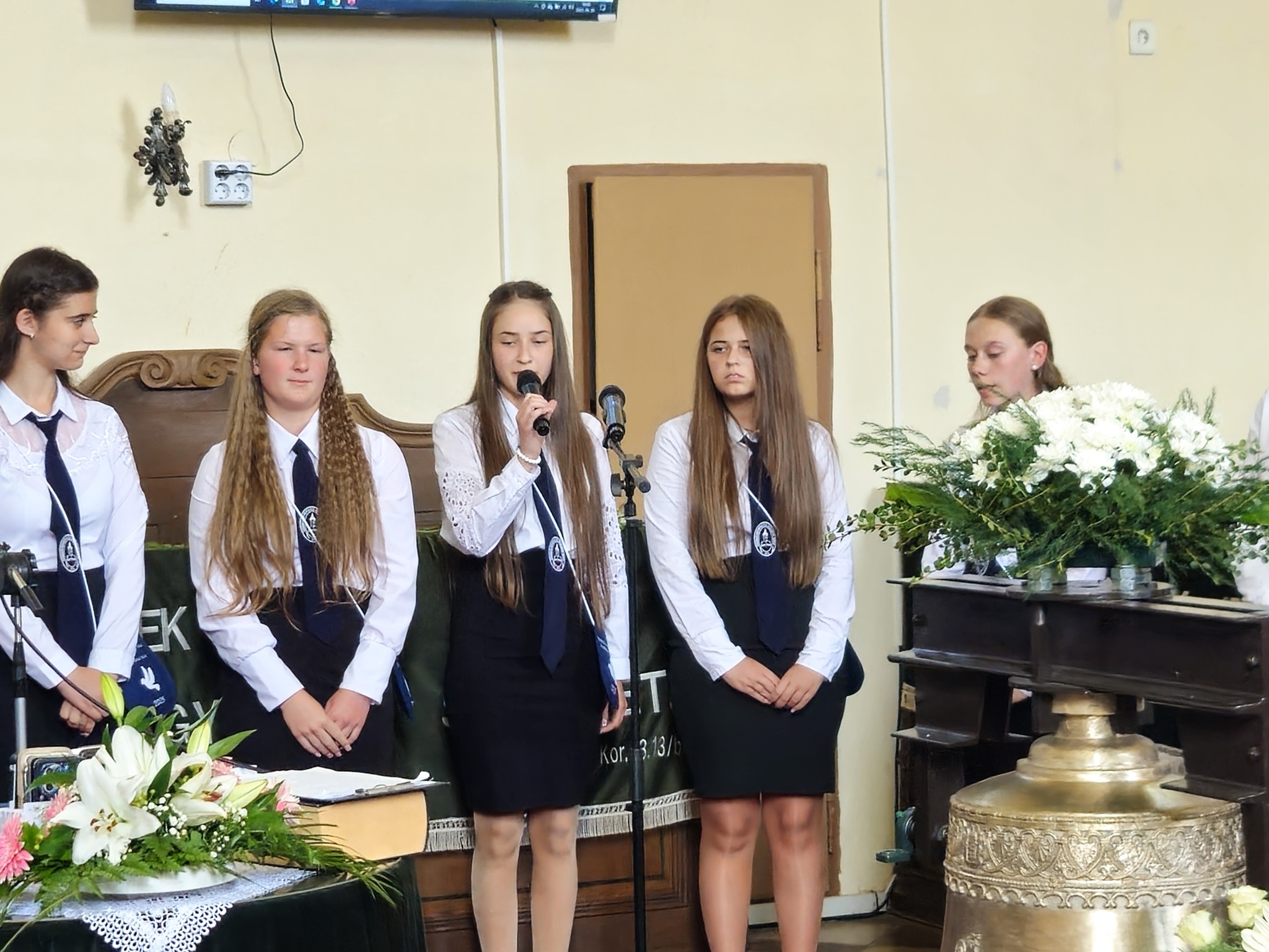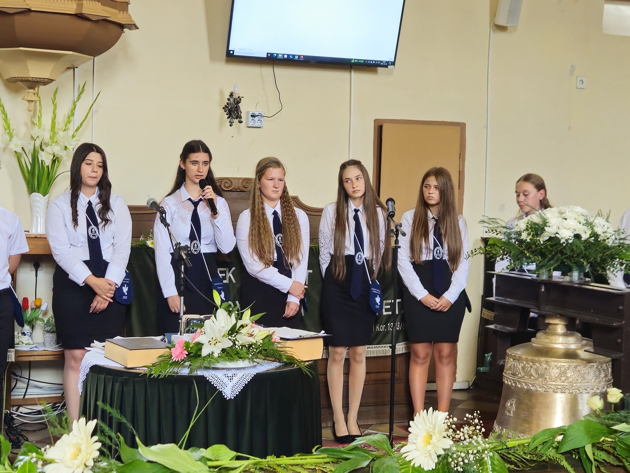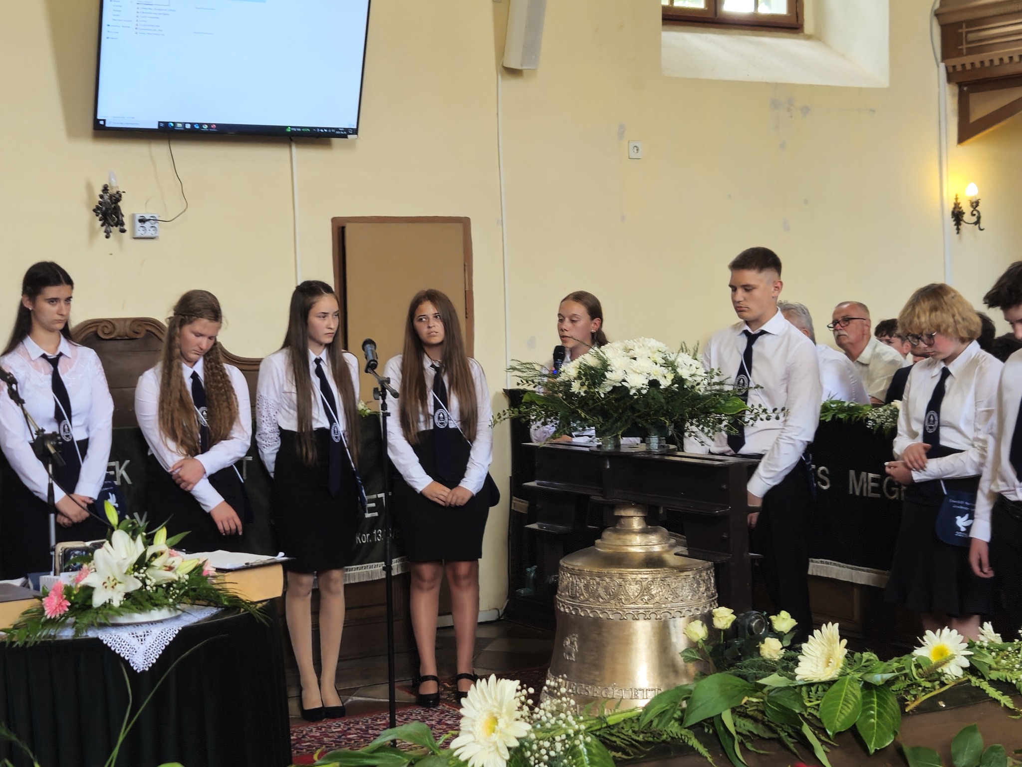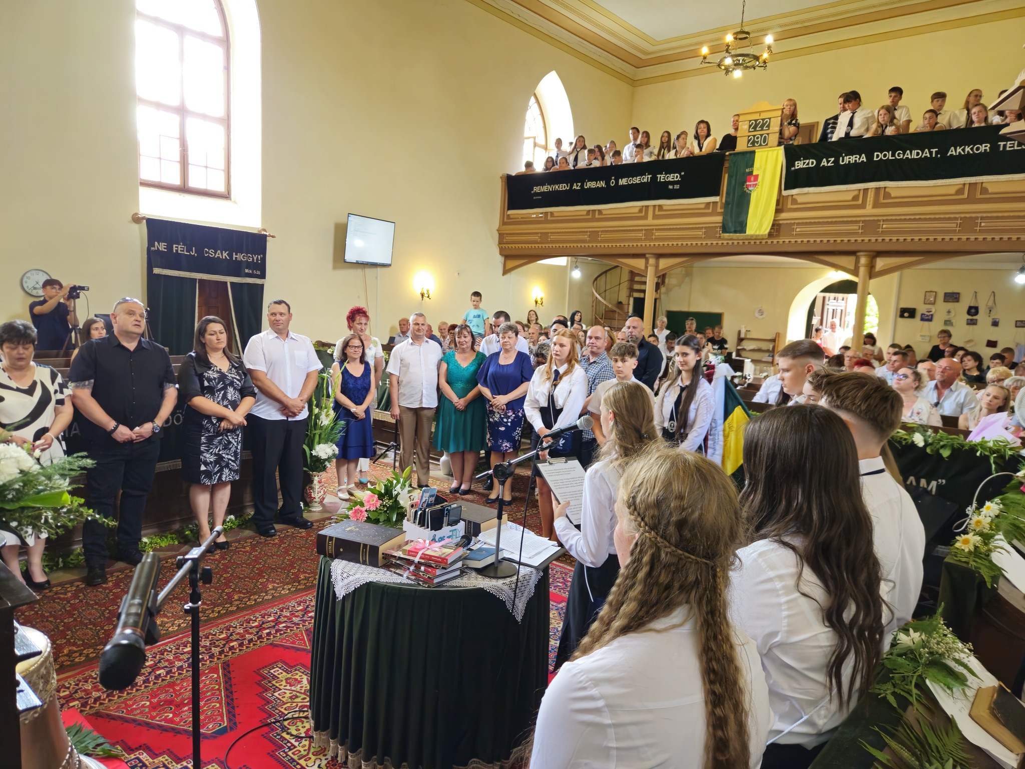 "Mindeddig megsegített minket az Úr!" 1Sámuel 7,12 Újabb évfolyam ballagott iskolánkból a tegnapi napon. Az ünnepi istentiszteleten idén is tele volt a református templom, hiszen egy újabb mérföldkőhöz ért 16 diákunk. Iskolánk zászlójának átadását követően, Nt. Benke András igehirdetését hallgathattunk meg, majd iskolánk főigazgatója, Szegőné Bene Anita, valamint a ballagók osztályfőnöke, Kujan Szabolcs köszönt el a diákoktól. Mindkét személy nagyon szívhez szóló és érzelmekkel teli mondatokkal jelezte a tanulóknak, hogy mennyire fontos és értékes diákjai voltak intézményünknek. Ezt követően a pedagógusok éneke következett, amely ezúttal egy átírt Edda dal volt, mégpedig az Elhagyom a várost című ikonikus sláger. A 7. osztályosok két énekkel, köszönettel és hálatelt szívvel búcsúztatták a ballagókat, tudva azt, hogy a következő tanévben már ők fognak ott állni, ahol most idősebb iskolatársaik álltak. A 8. osztályosok is nagyon megható, olykor vidám pillanatokat szerző, olykor pedig komoly és könnyfacsaró műsort adtak elő, amellyel méltóképpen hagyták maguk mögött általános iskolás éveiket. A diákok nevében Filó Norina búcsúzott a pedagógusoktól, iskolatársaktól és a szülőktől egyaránt, akik ezt követően állhattak ki gyermekük elé, és köszönhették meg mindazt a nyolc esztendőt, amelyet együtt tölthettek iskolánk falai között. Első osztályosaink egy-egy szál virággal köszöntek el az "öreg diákoktól", akik szemlátomást nagyon meghatódva vették át az ajándékokat. A református egyházközség főgondnoka, Ivanics Bálint bölcs gondolatokkal köszönte meg tanulóink elmúlt évi munkáját, amelyet a nevelőtestületi dicséretben részesülő diákok és szülők köszöntése követett. A gyerekek közül, Kormos Edina, Nagy Alexandra, valamint Berceli Tímea, szülők közül pedig, Filó Zsoltné, Ferenczné Fóris Andrea, Ferencz Zoltán, valamint Berceliné Papp Veronika és néhai Berceli István kapta meg ezt a megtiszteltetést. A szülők nevében, Filó Zsoltné mondott búcsúbeszédet, amelyben az iskolavezetésnek és a pedagógusoknak is megköszönte az elvégzett munkát. Továbbá kiegészülve több szülővel, megköszönték mindazok munkáját is, akik a ballagáson vállaltak valamilyen szerepet. Az istentisztelet végén a szokásos prezentáció következett, amelyet most egy videós emlék is kiegészített. Köszönjük mindenkinek, akik eljöttek! Ballagó diákjainknak pedig sok sikert és Isten gazdag áldását kívánjuk további életükre! Visszavárunk titeket!