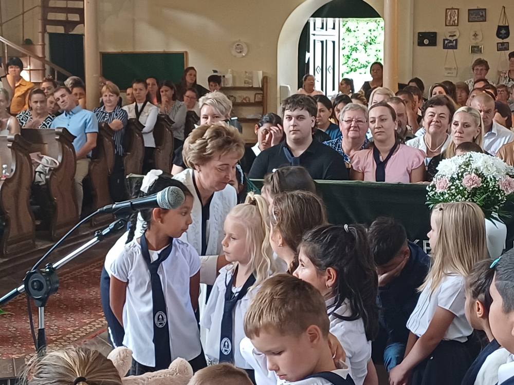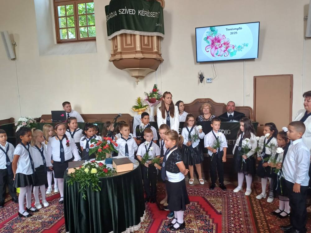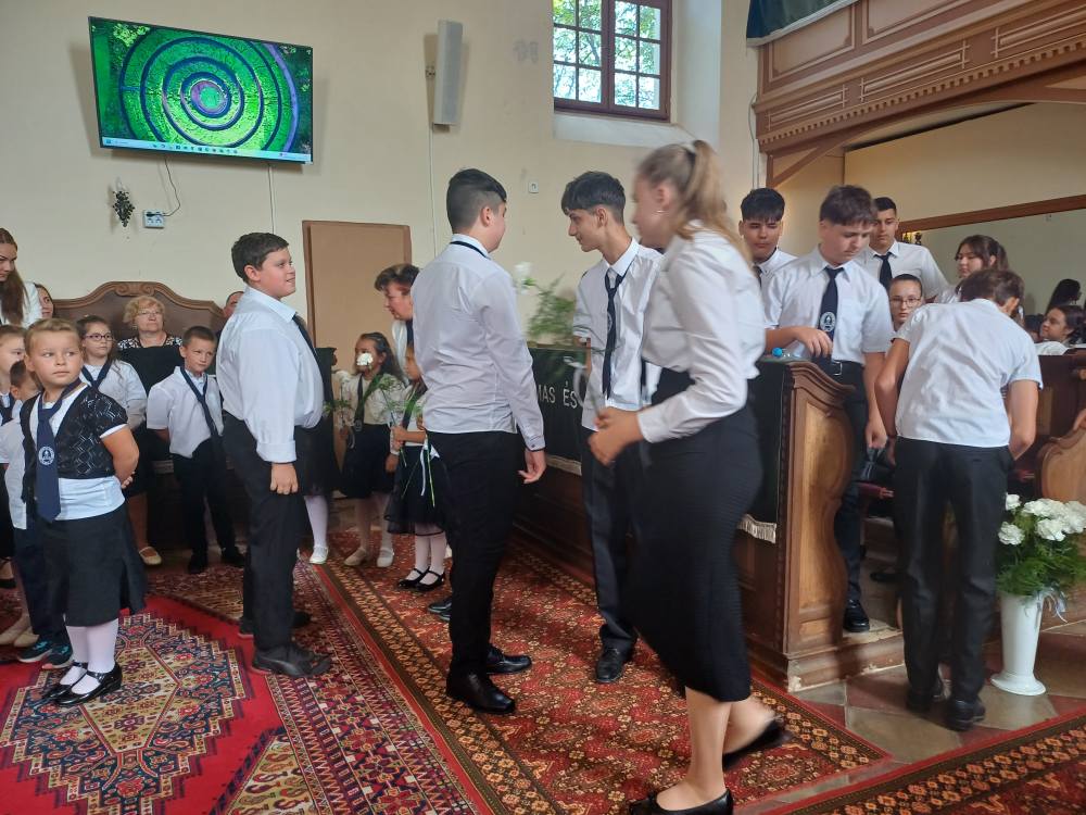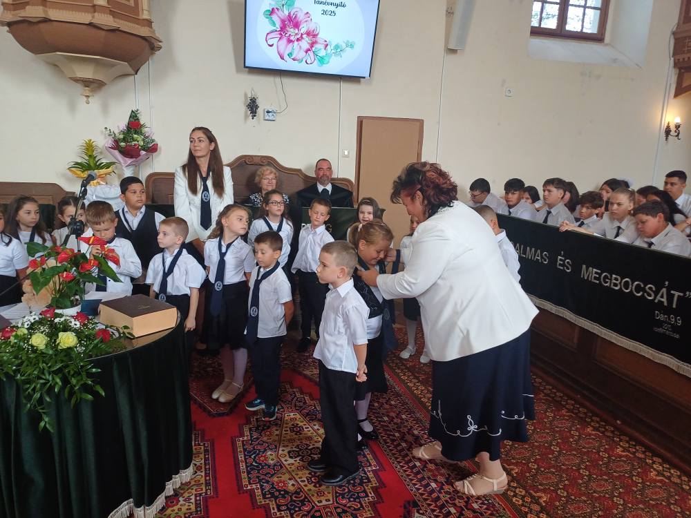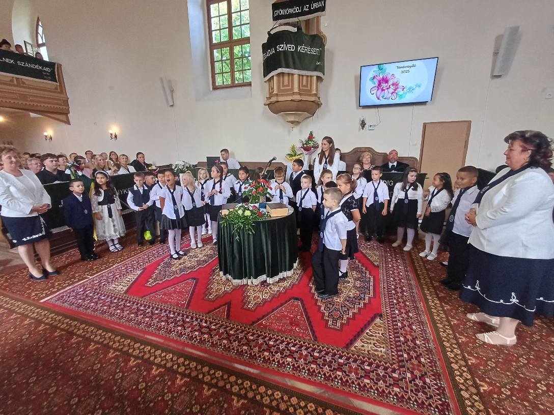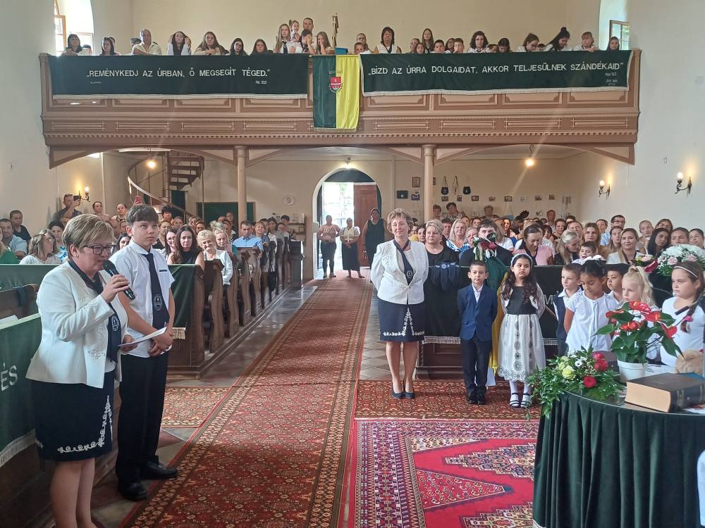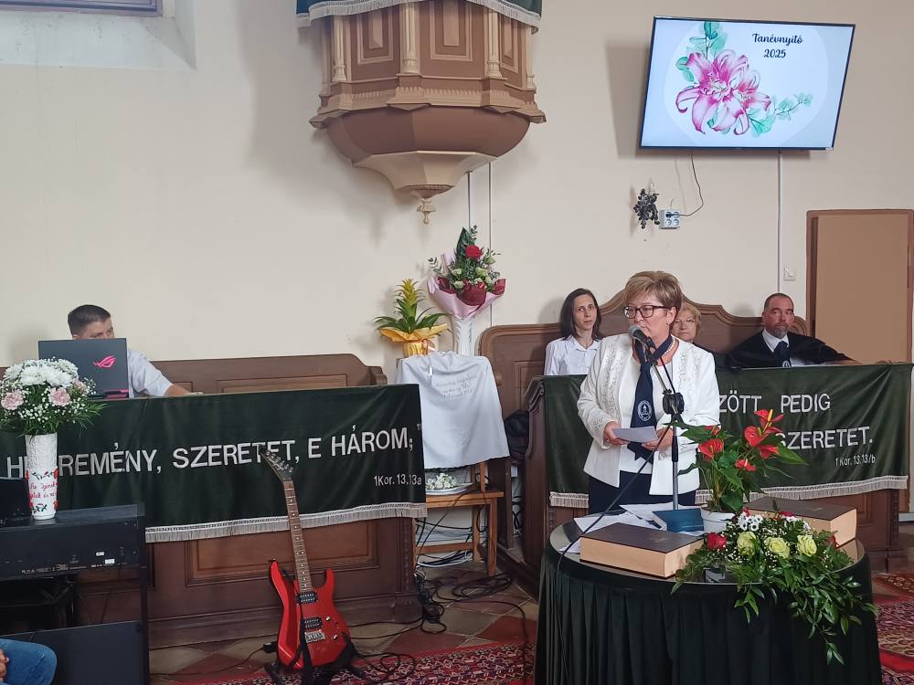 "Azt pedig tudjuk, hogy akik Istent szeretik, azoknak minden a javukra szolgál." Róma 8,28 Tanévnyitó istentiszteletet tartottunk a mai napon. Sárközújlaki testvérgyülekezetünk lelkipásztora, Nt. Nagy Erika szolgált a református templomban, amit iskolánk főigazgatójának köszöntője követett. Ezt követően az első osztályosok műsorát és fogadalomtételét hallgathattuk meg, majd az osztályfőnök és pótosztályfőnök átadta a gyerekeknek az iskolánk címerével ellátott nyakkendőt. A 8. osztályosok egy-egy szál virággal, Benke Bence verssel köszöntötte a legkisebbeket. Az istentisztelet végén pedagógusok és további munkatársak is fogadalmat tettek, amelyet köszönetnyilvánítás zárt le. Istentől áldott 2025/2026-os tanévet kívánunk mindenkinek!