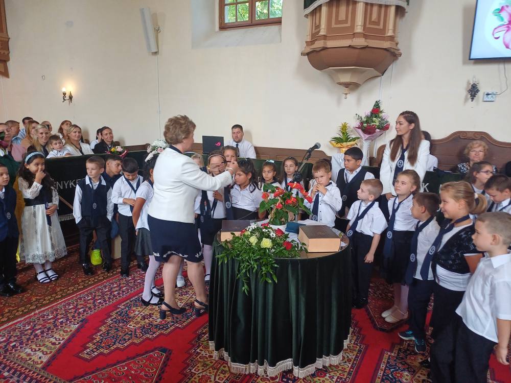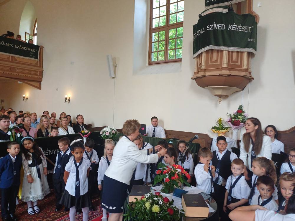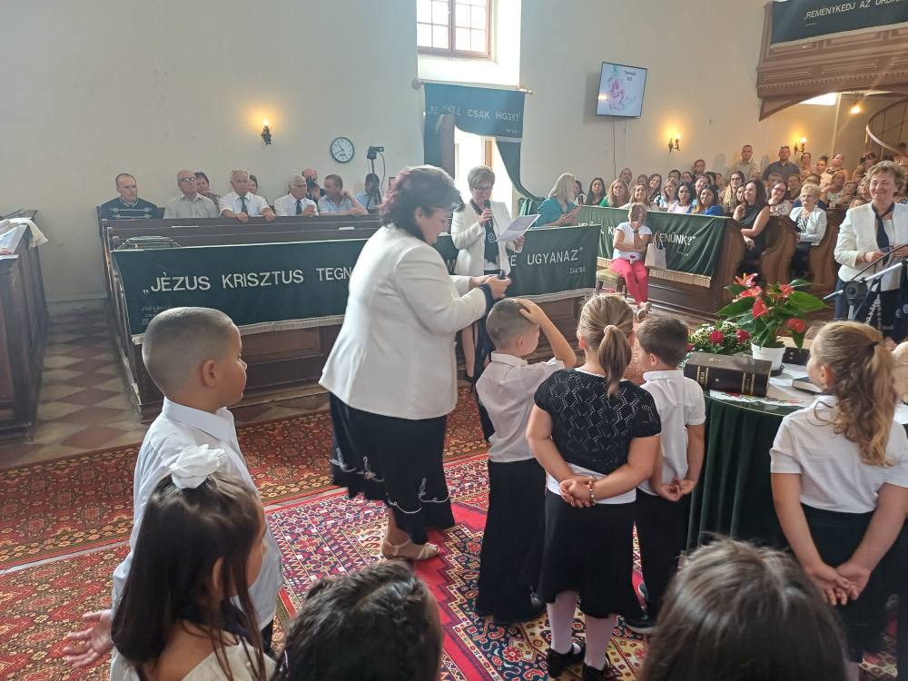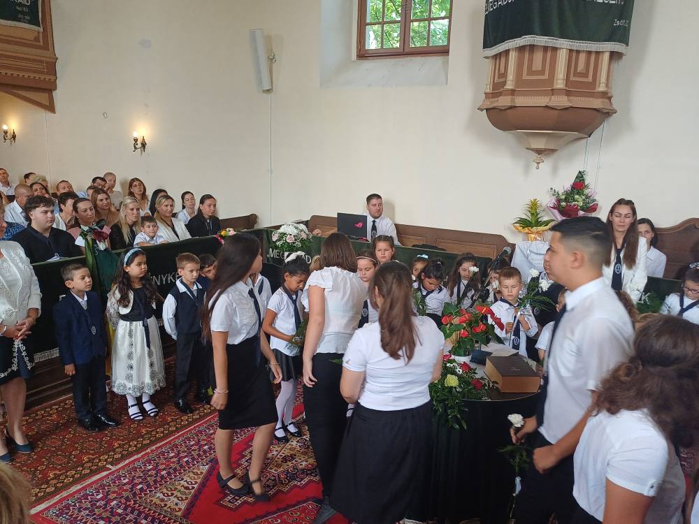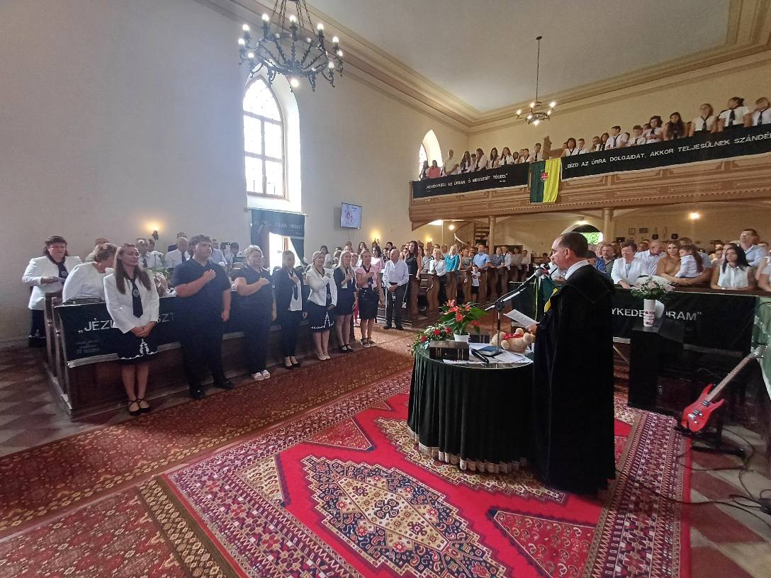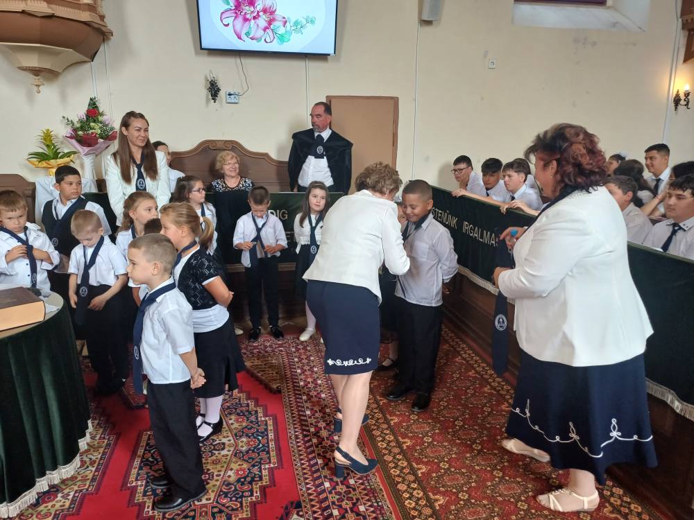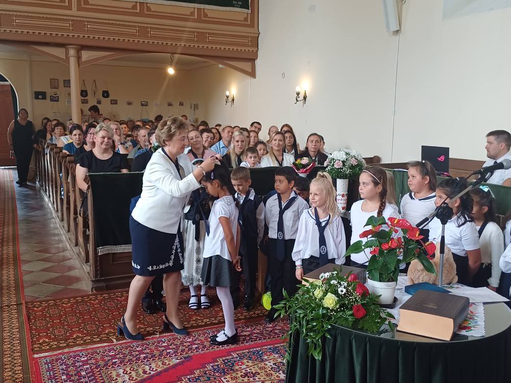 "Azt pedig tudjuk, hogy akik Istent szeretik, azoknak minden a javukra szolgál." Róma 8,28 Tanévnyitó istentiszteletet tartottunk a mai napon. Sárközújlaki testvérgyülekezetünk lelkipásztora, Nt. Nagy Erika szolgált a református templomban, amit iskolánk főigazgatójának köszöntője követett. Ezt követően az első osztályosok műsorát és fogadalomtételét hallgathattuk meg, majd az osztályfőnök és pótosztályfőnök átadta a gyerekeknek az iskolánk címerével ellátott nyakkendőt. A 8. osztályosok egy-egy szál virággal, Benke Bence verssel köszöntötte a legkisebbeket. Az istentisztelet végén pedagógusok és további munkatársak is fogadalmat tettek, amelyet köszönetnyilvánítás zárt le. Istentől áldott 2025/2026-os tanévet kívánunk mindenkinek!