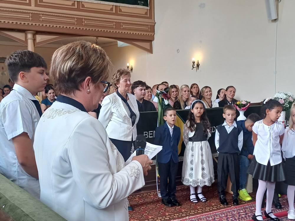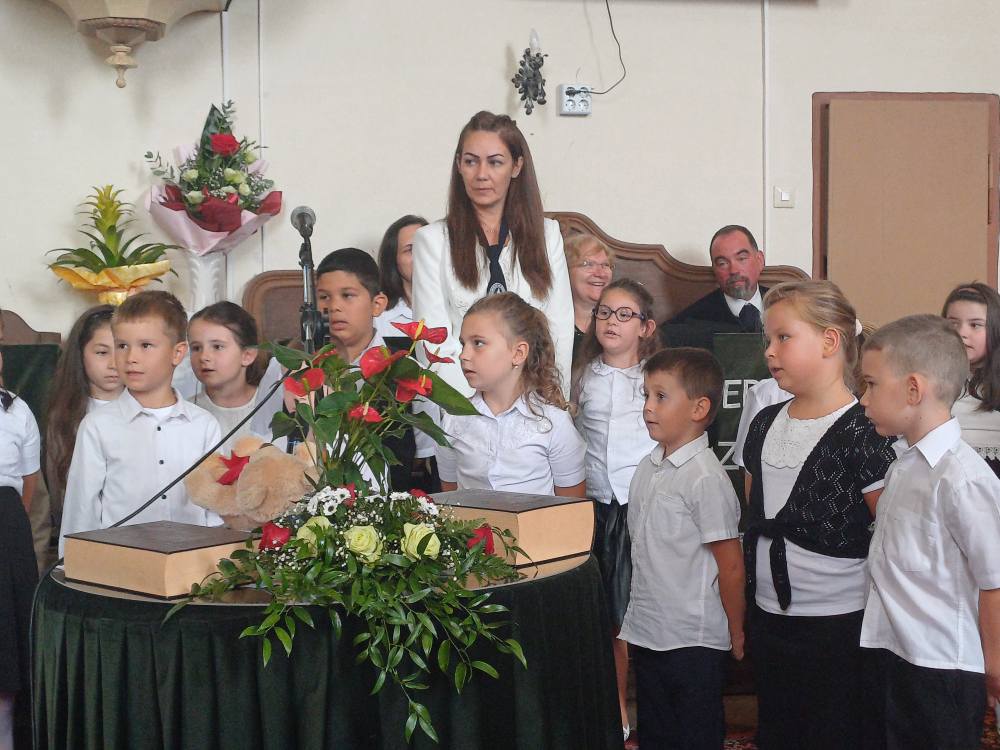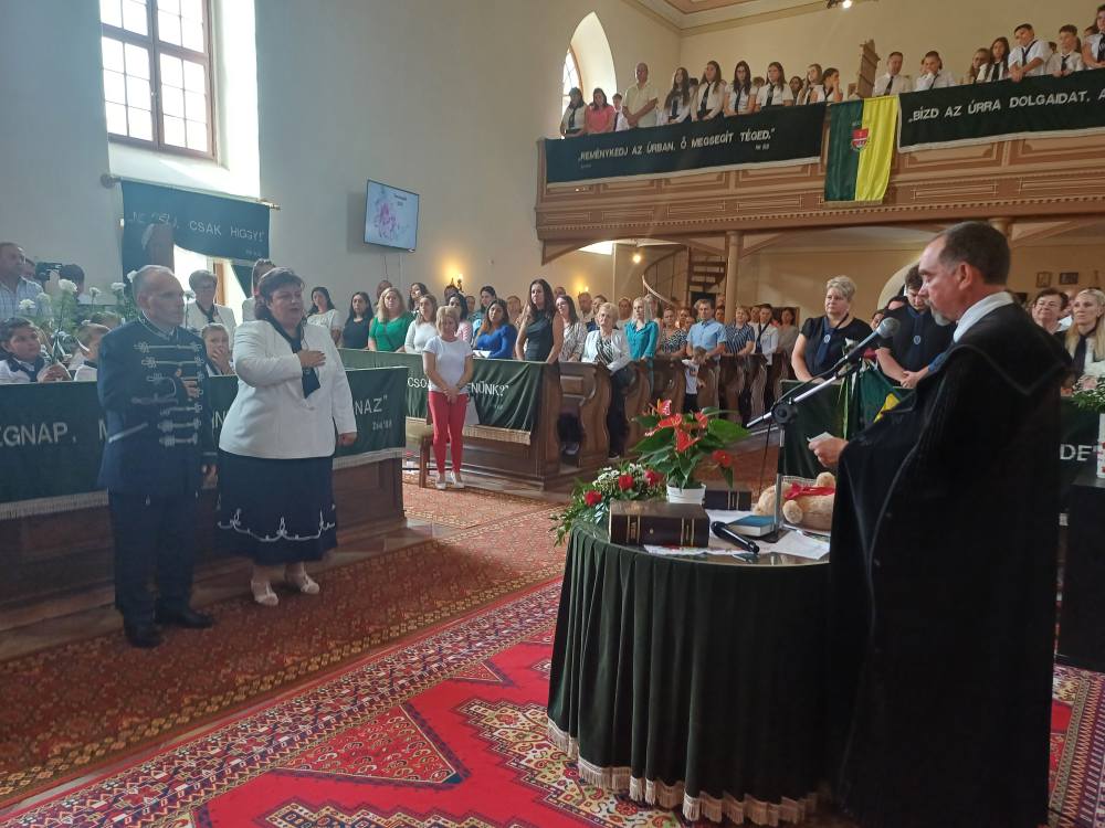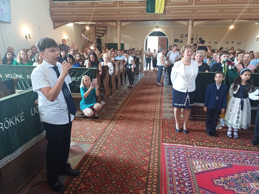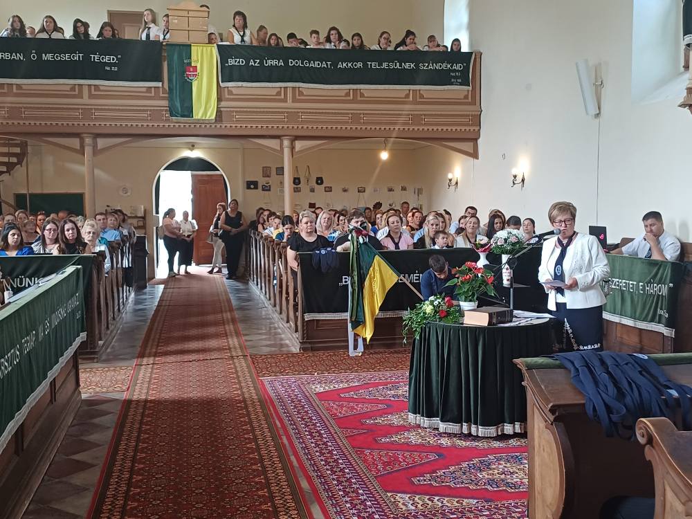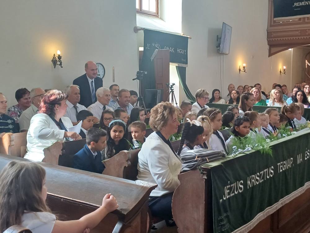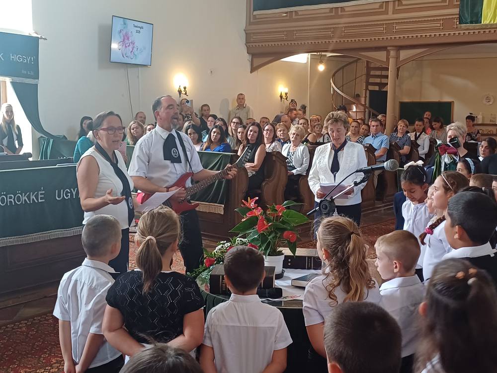 "Azt pedig tudjuk, hogy akik Istent szeretik, azoknak minden a javukra szolgál." Róma 8,28 Tanévnyitó istentiszteletet tartottunk a mai napon. Sárközújlaki testvérgyülekezetünk lelkipásztora, Nt. Nagy Erika szolgált a református templomban, amit iskolánk főigazgatójának köszöntője követett. Ezt követően az első osztályosok műsorát és fogadalomtételét hallgathattuk meg, majd az osztályfőnök és pótosztályfőnök átadta a gyerekeknek az iskolánk címerével ellátott nyakkendőt. A 8. osztályosok egy-egy szál virággal, Benke Bence verssel köszöntötte a legkisebbeket. Az istentisztelet végén pedagógusok és további munkatársak is fogadalmat tettek, amelyet köszönetnyilvánítás zárt le. Istentől áldott 2025/2026-os tanévet kívánunk mindenkinek!