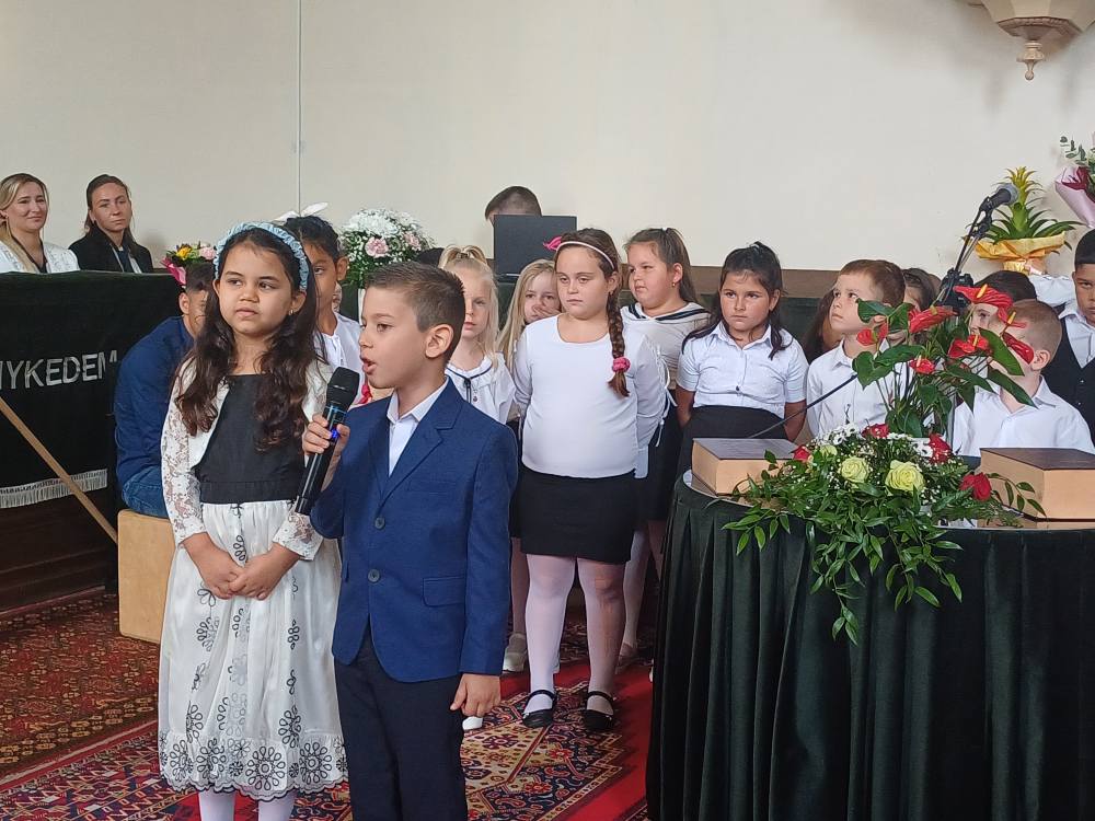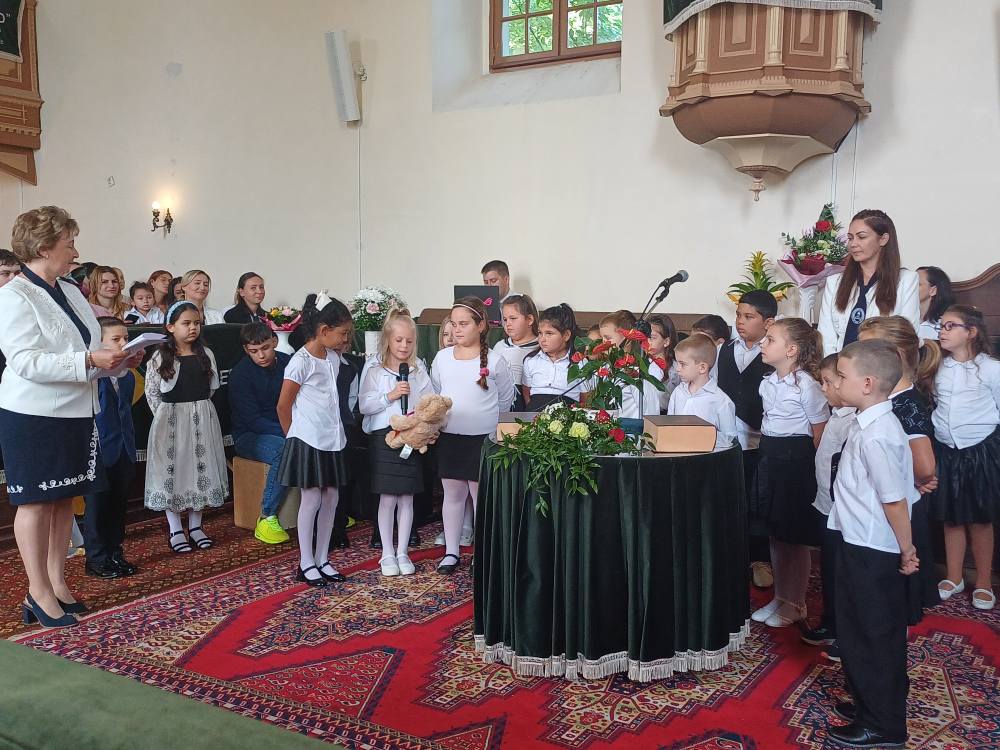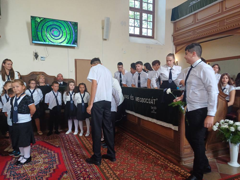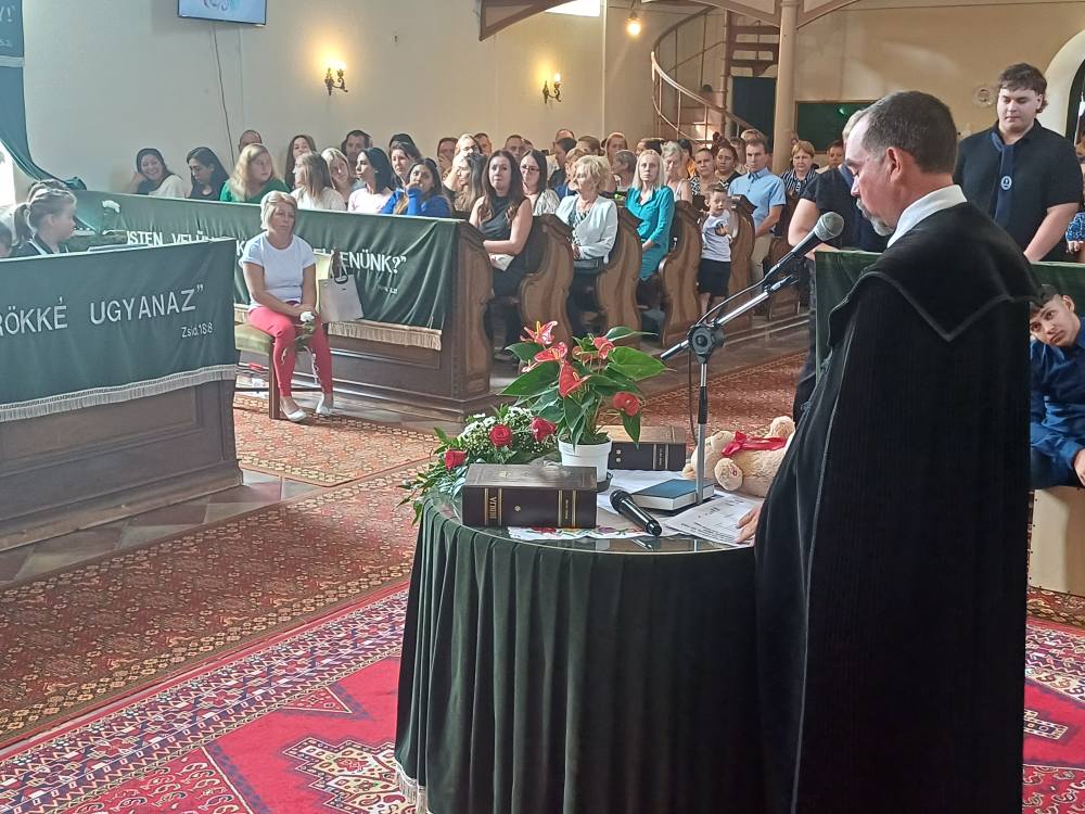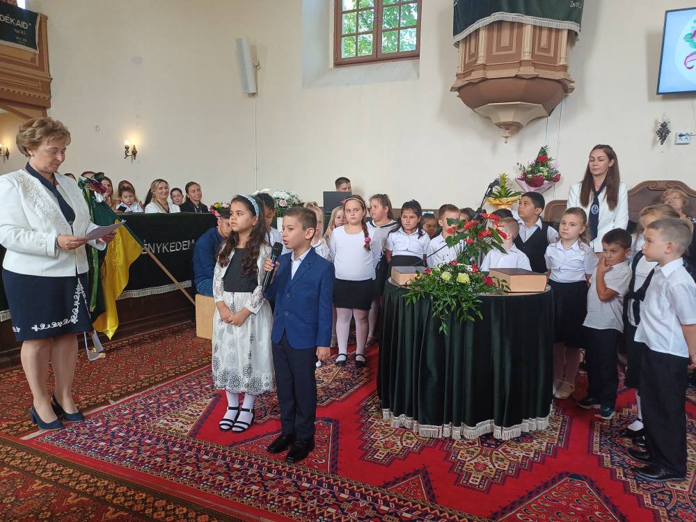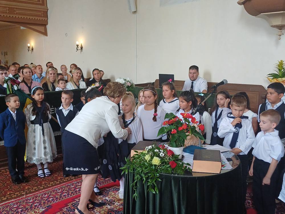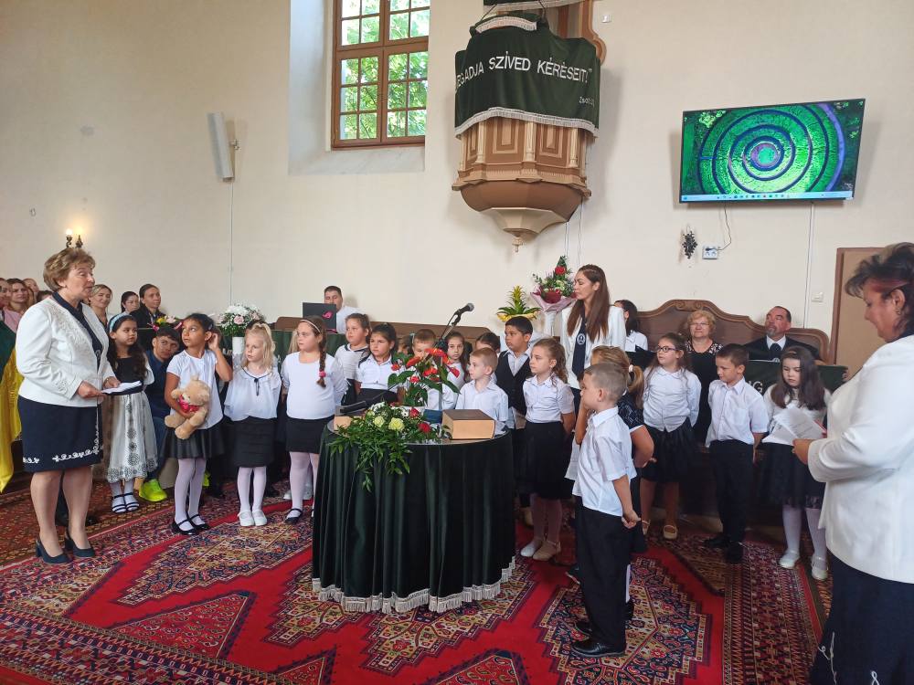 "Azt pedig tudjuk, hogy akik Istent szeretik, azoknak minden a javukra szolgál." Róma 8,28 Tanévnyitó istentiszteletet tartottunk a mai napon. Sárközújlaki testvérgyülekezetünk lelkipásztora, Nt. Nagy Erika szolgált a református templomban, amit iskolánk főigazgatójának köszöntője követett. Ezt követően az első osztályosok műsorát és fogadalomtételét hallgathattuk meg, majd az osztályfőnök és pótosztályfőnök átadta a gyerekeknek az iskolánk címerével ellátott nyakkendőt. A 8. osztályosok egy-egy szál virággal, Benke Bence verssel köszöntötte a legkisebbeket. Az istentisztelet végén pedagógusok és további munkatársak is fogadalmat tettek, amelyet köszönetnyilvánítás zárt le. Istentől áldott 2025/2026-os tanévet kívánunk mindenkinek!