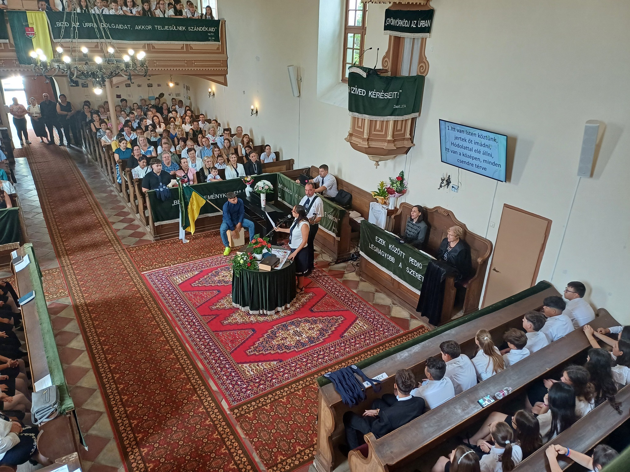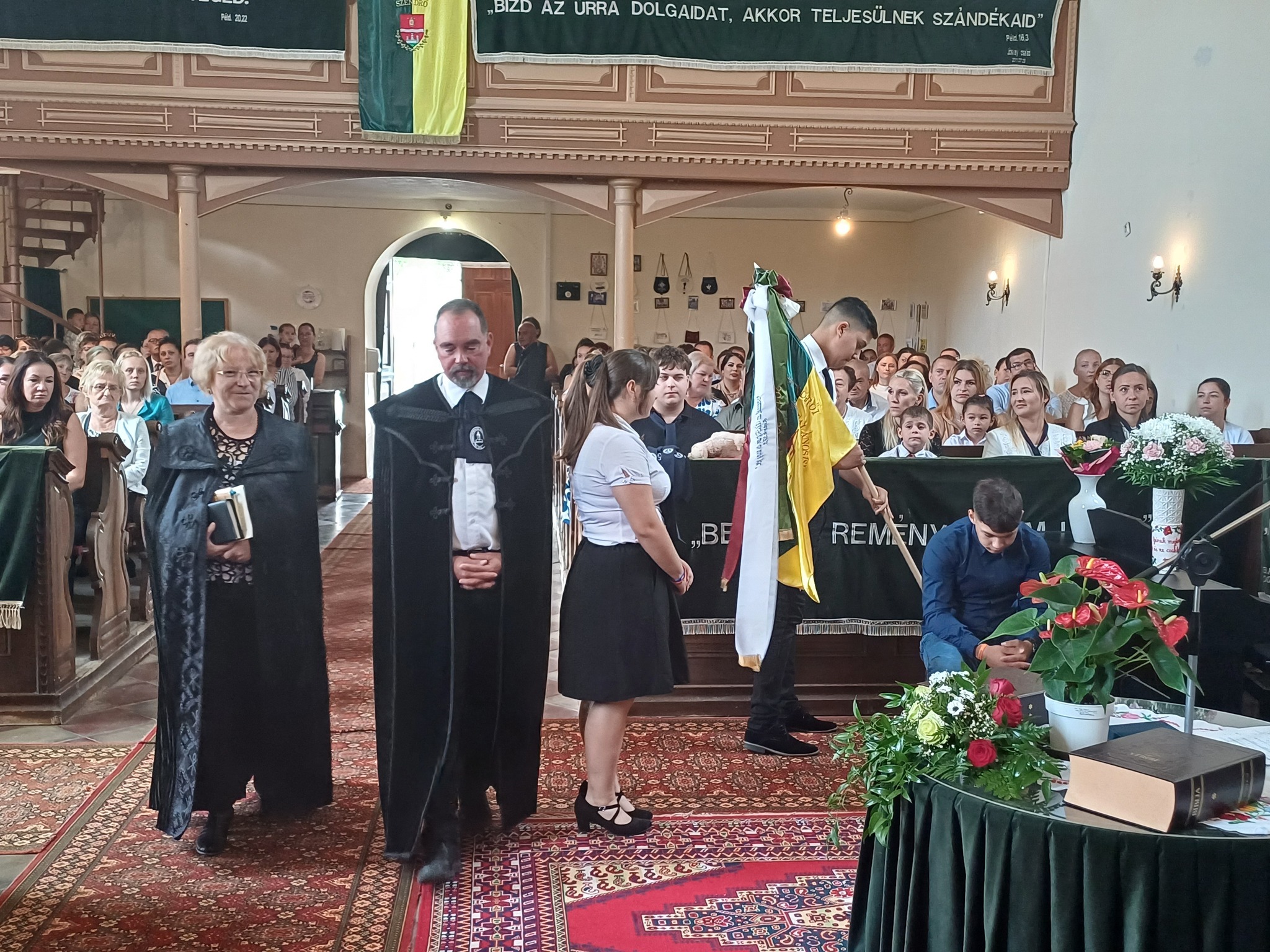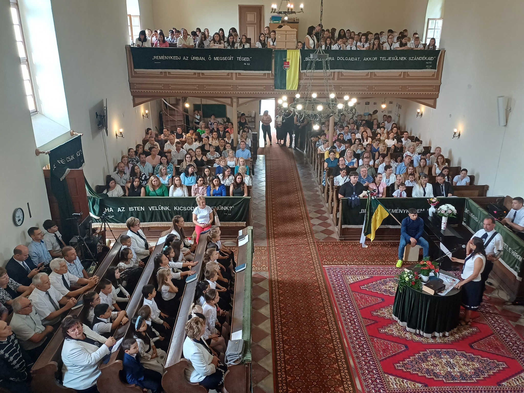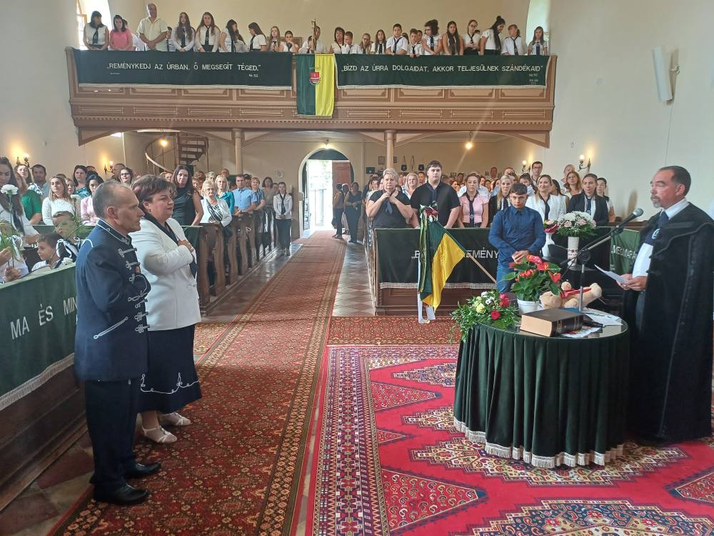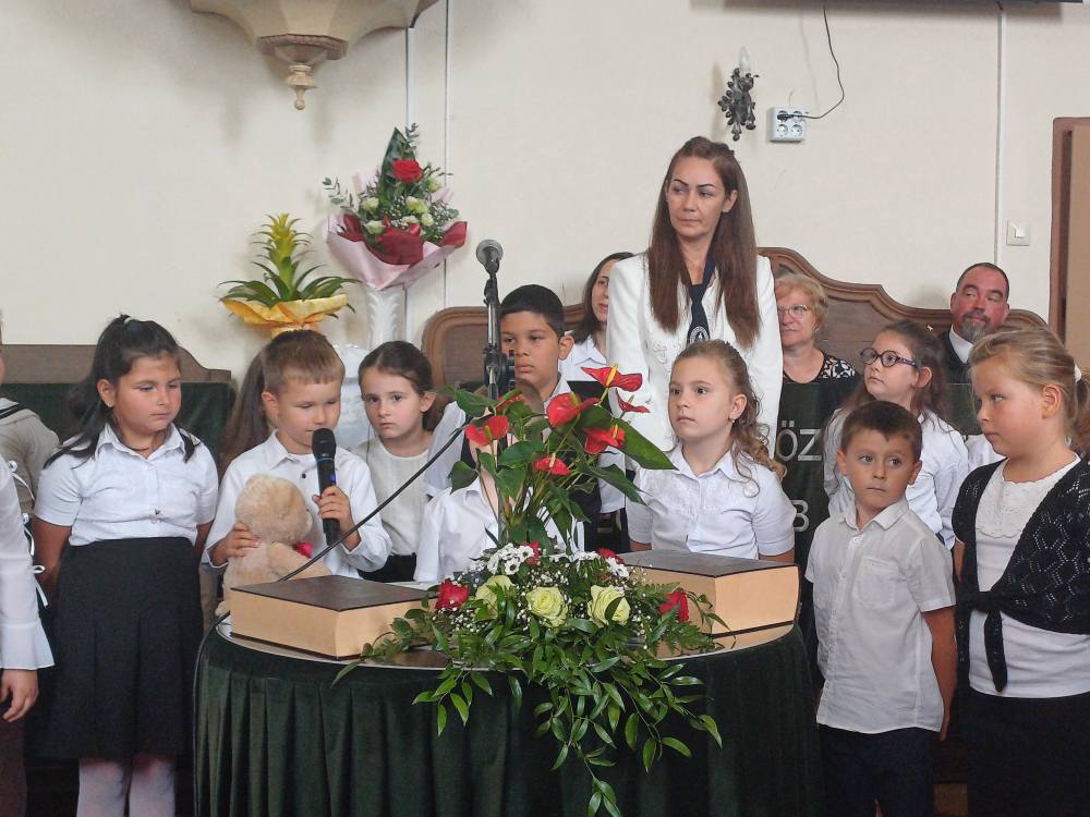 "Azt pedig tudjuk, hogy akik Istent szeretik, azoknak minden a javukra szolgál." Róma 8,28 Tanévnyitó istentiszteletet tartottunk a mai napon. Sárközújlaki testvérgyülekezetünk lelkipásztora, Nt. Nagy Erika szolgált a református templomban, amit iskolánk főigazgatójának köszöntője követett. Ezt követően az első osztályosok műsorát és fogadalomtételét hallgathattuk meg, majd az osztályfőnök és pótosztályfőnök átadta a gyerekeknek az iskolánk címerével ellátott nyakkendőt. A 8. osztályosok egy-egy szál virággal, Benke Bence verssel köszöntötte a legkisebbeket. Az istentisztelet végén pedagógusok és további munkatársak is fogadalmat tettek, amelyet köszönetnyilvánítás zárt le. Istentől áldott 2025/2026-os tanévet kívánunk mindenkinek!