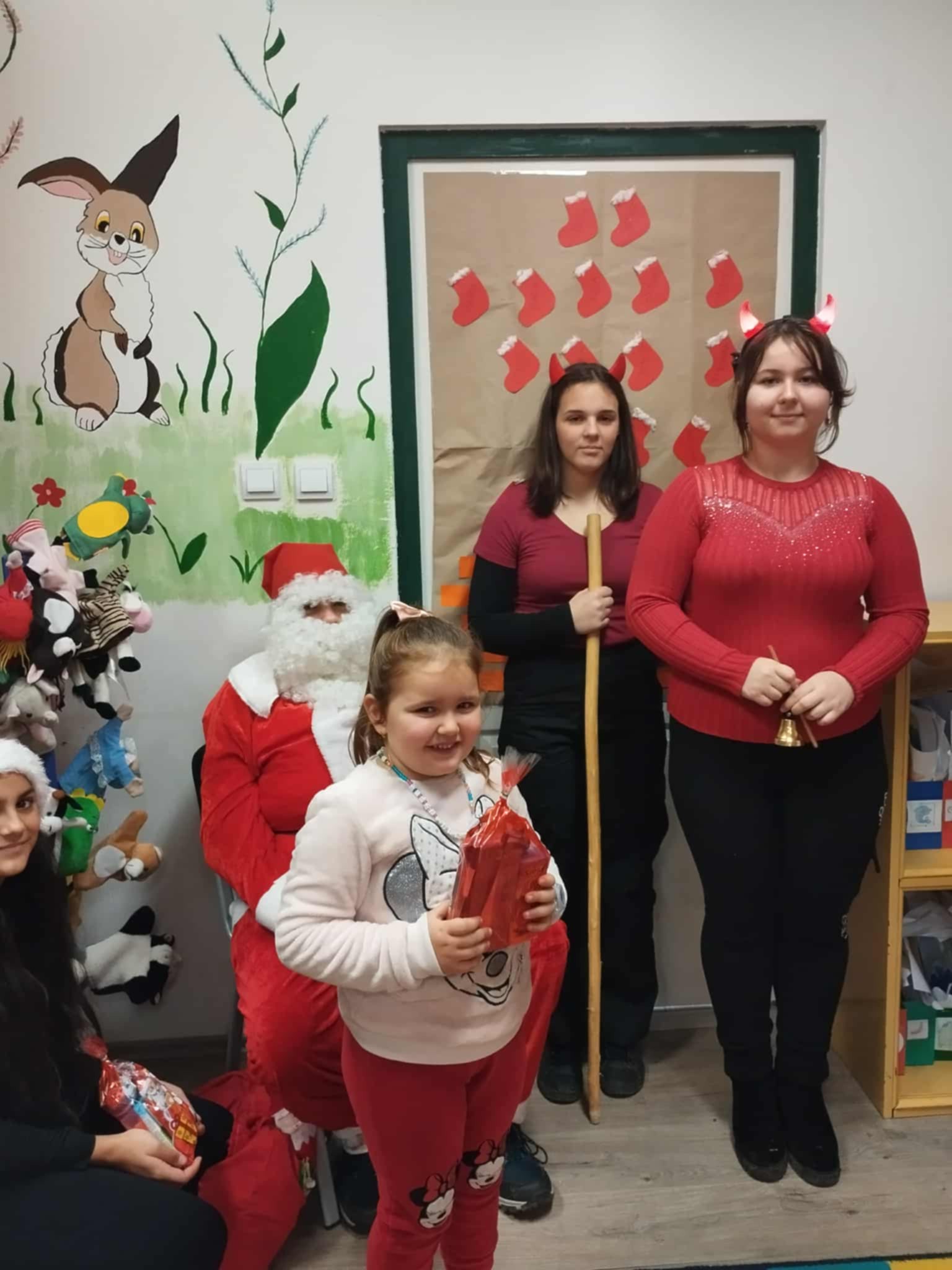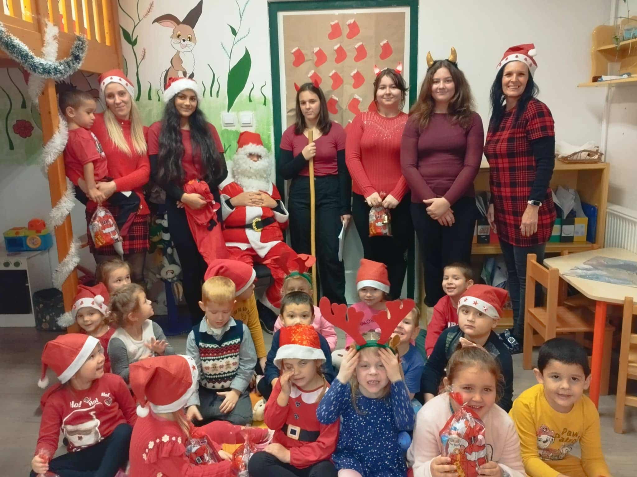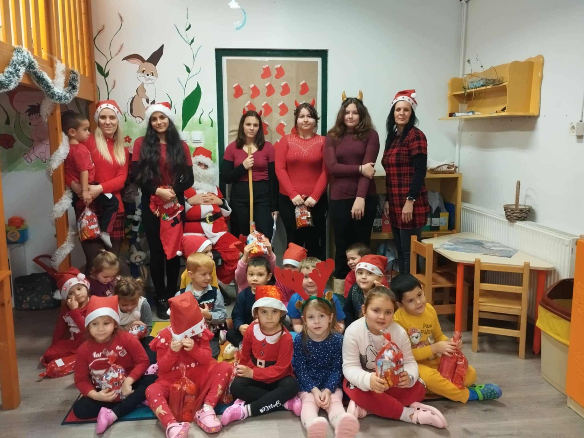 Az oviban is járt a Mikulás krampuszaival! Itt is nagyon várták a gyerekek őket, hiszen csupa finomság volt a csomagban, amit kaptak. A gyerekek természetesen azt válaszolták a Mikulás bácsinak, hogy egész éven jól viselkedtek, így virgács senkinek sem került a táskájába. Köszönjük a Mikulás bácsinak és krampuszainak, hogy eljöttek hozzánk!