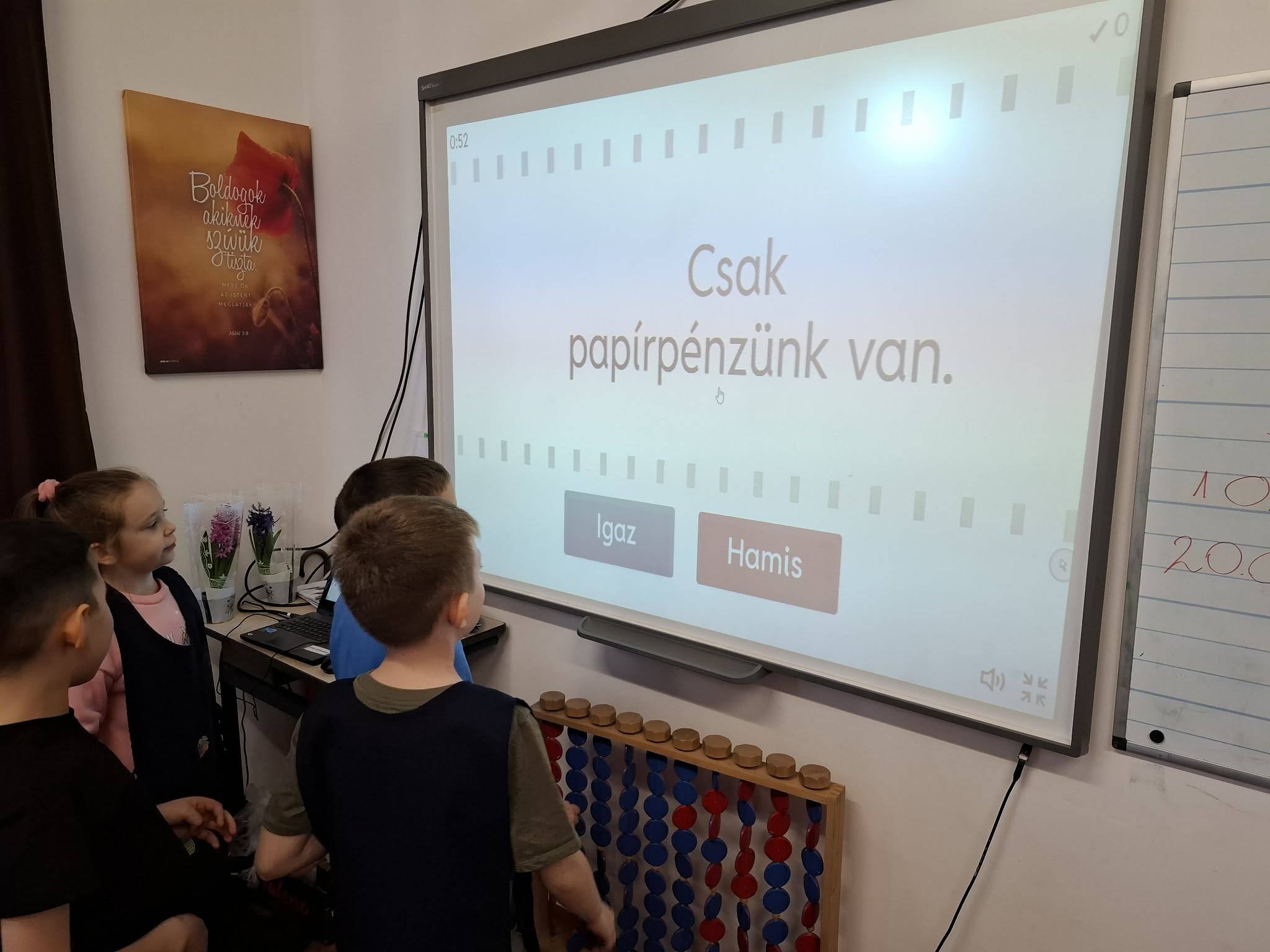 "minden rossznak gyökere a pénz szerelme" (1Tim 6,10) Pénzhetet tartottunk iskolánkban! Az 5. osztályosok online feladatokkal mèlyítették a Pénz7 témahét ismereteit, a 3. osztályosok "bevásároltak" 1000, 2000 Ft értékben a hirdetőújság kínàlataiból. Több osztály is kreatív, digitális feladatokkal mélyítette tudását. Célunk volt, hogy a diákok pénzügyi tudatosságát és vállalkozói készségeit fejlesszük játékos, élményalapú módszerekkel. A kezdeményezés célja, hogy már fiatal korban megalapozza a felelős gazdálkodást, a zsebpénz beosztását és a tudatos megtakarítást.