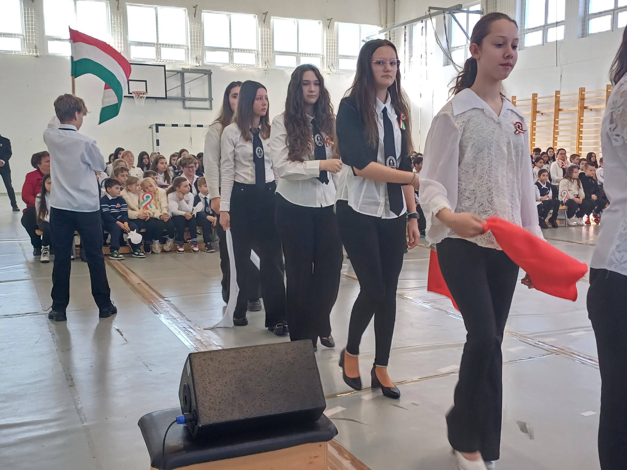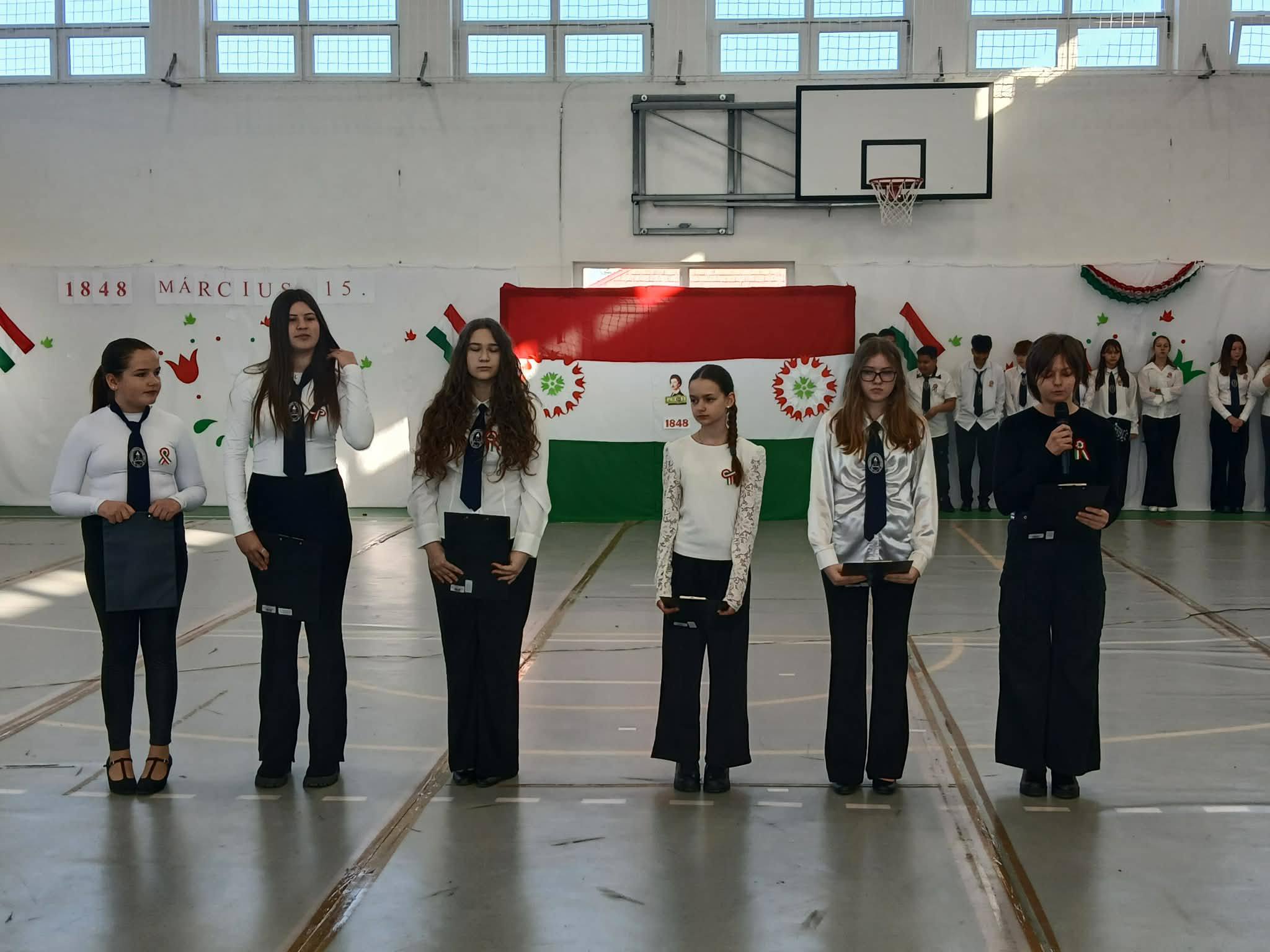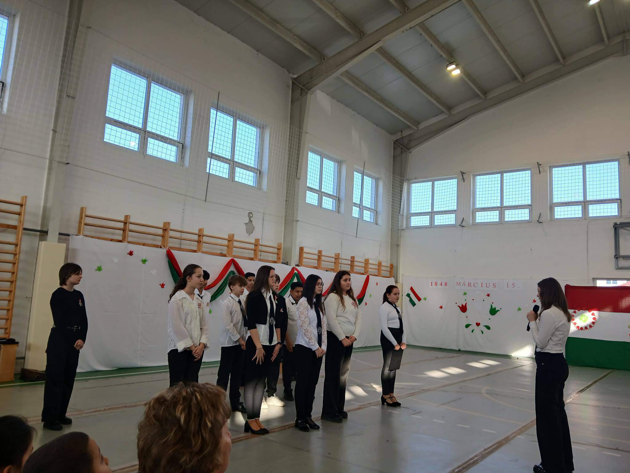 "Krisztus szabadságra szabadított meg minket, álljatok meg tehát szilárdan, és ne engedjétek magatokat újra a szolgaság igájába fogni." Galata 5,1 Ma megtartottuk iskolánkban a március 15-i megemlékezést! Nt. Benke András áhítata után, 7. osztályos diákjaink szolgálata következett, akik méltóképpen, versekkel és kendős tánccal mutatták meg a forradalom és szabadságharc legfontosabb mondanivalóit. A szózatot követően, iskolánk főigazgatója, Szegőné Bene Anita köszönte meg tanulóink szereplését.