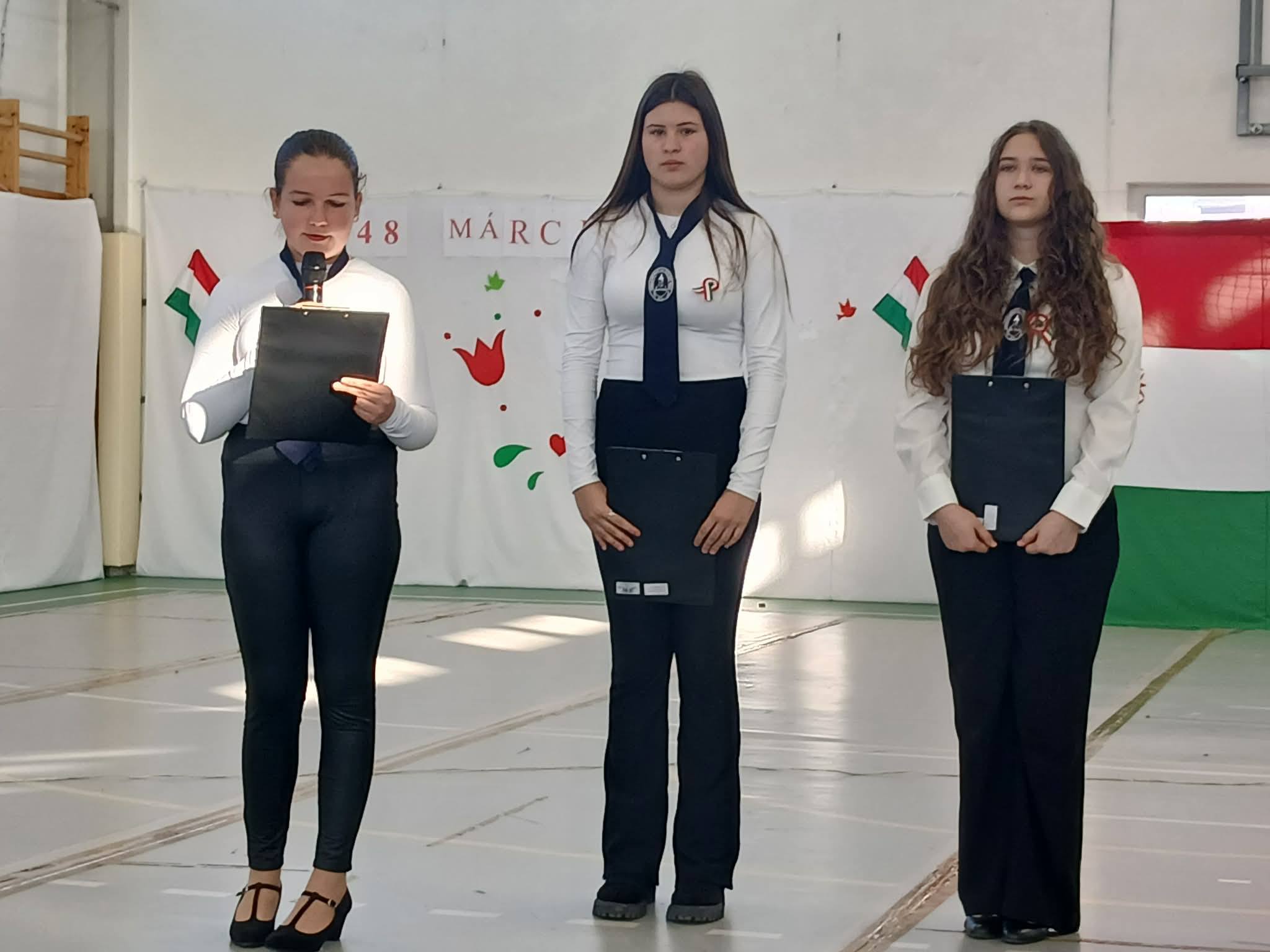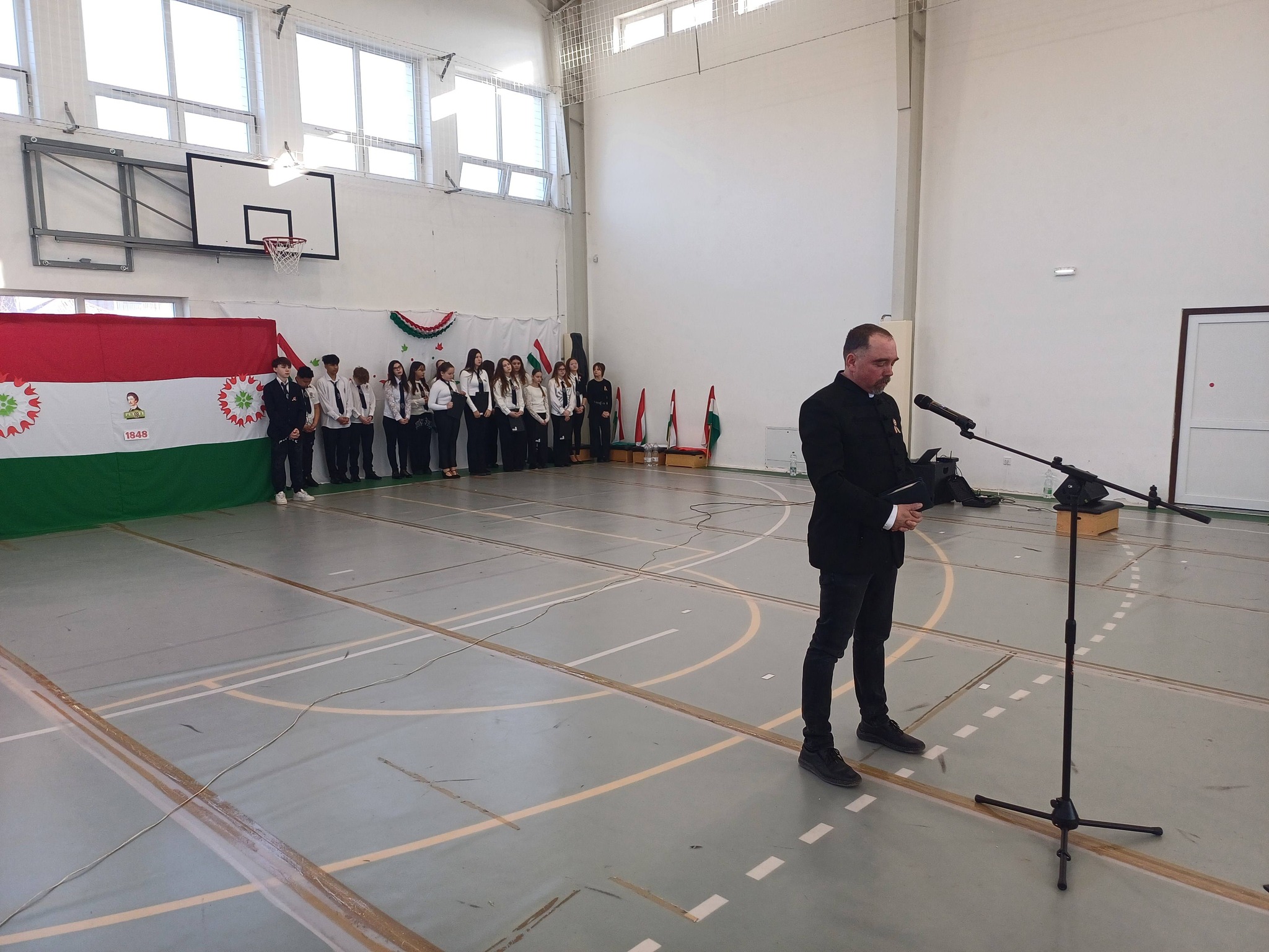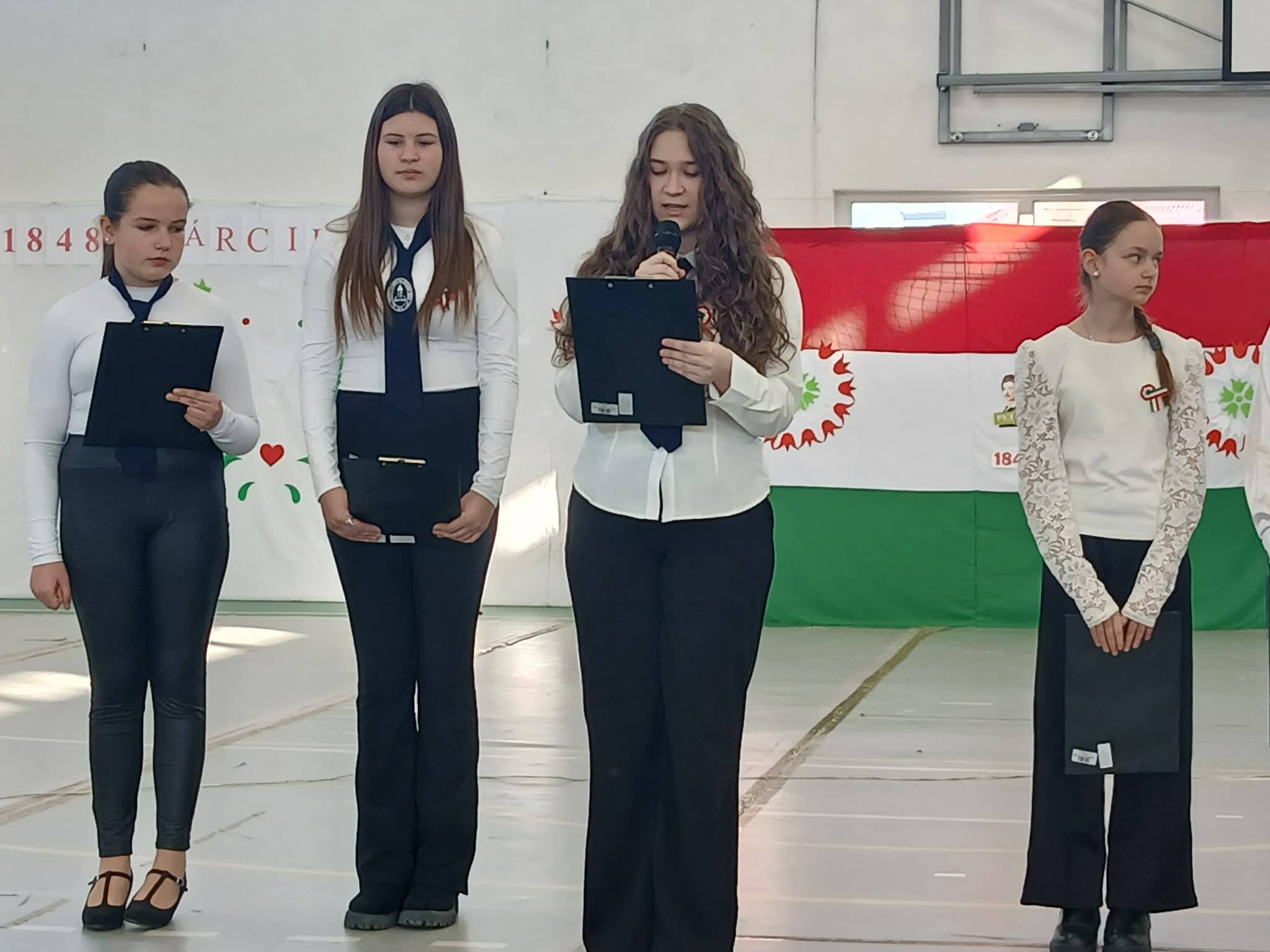 "Krisztus szabadságra szabadított meg minket, álljatok meg tehát szilárdan, és ne engedjétek magatokat újra a szolgaság igájába fogni." Galata 5,1 Ma megtartottuk iskolánkban a március 15-i megemlékezést! Nt. Benke András áhítata után, 7. osztályos diákjaink szolgálata következett, akik méltóképpen, versekkel és kendős tánccal mutatták meg a forradalom és szabadságharc legfontosabb mondanivalóit. A szózatot követően, iskolánk főigazgatója, Szegőné Bene Anita köszönte meg tanulóink szereplését.