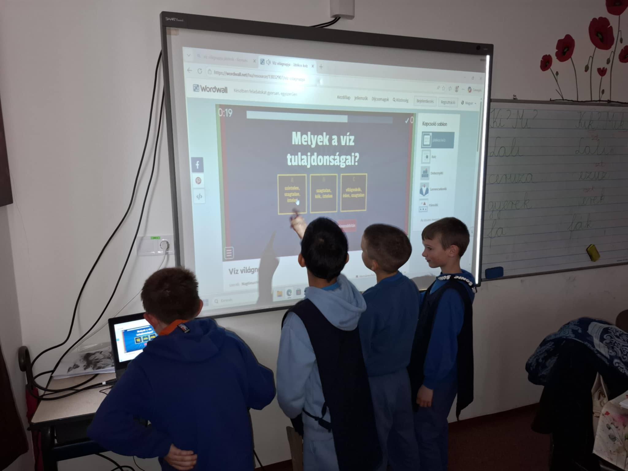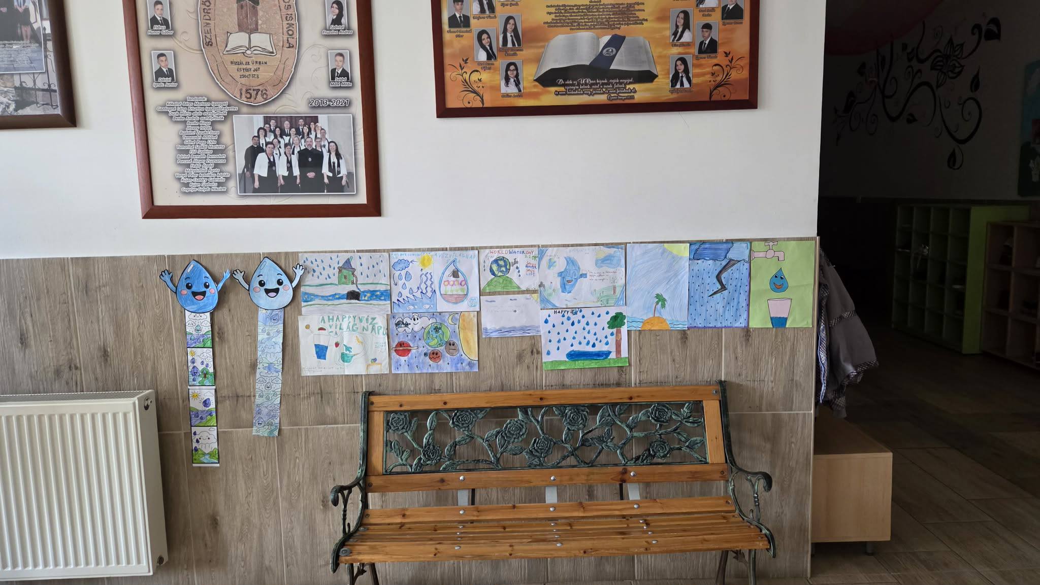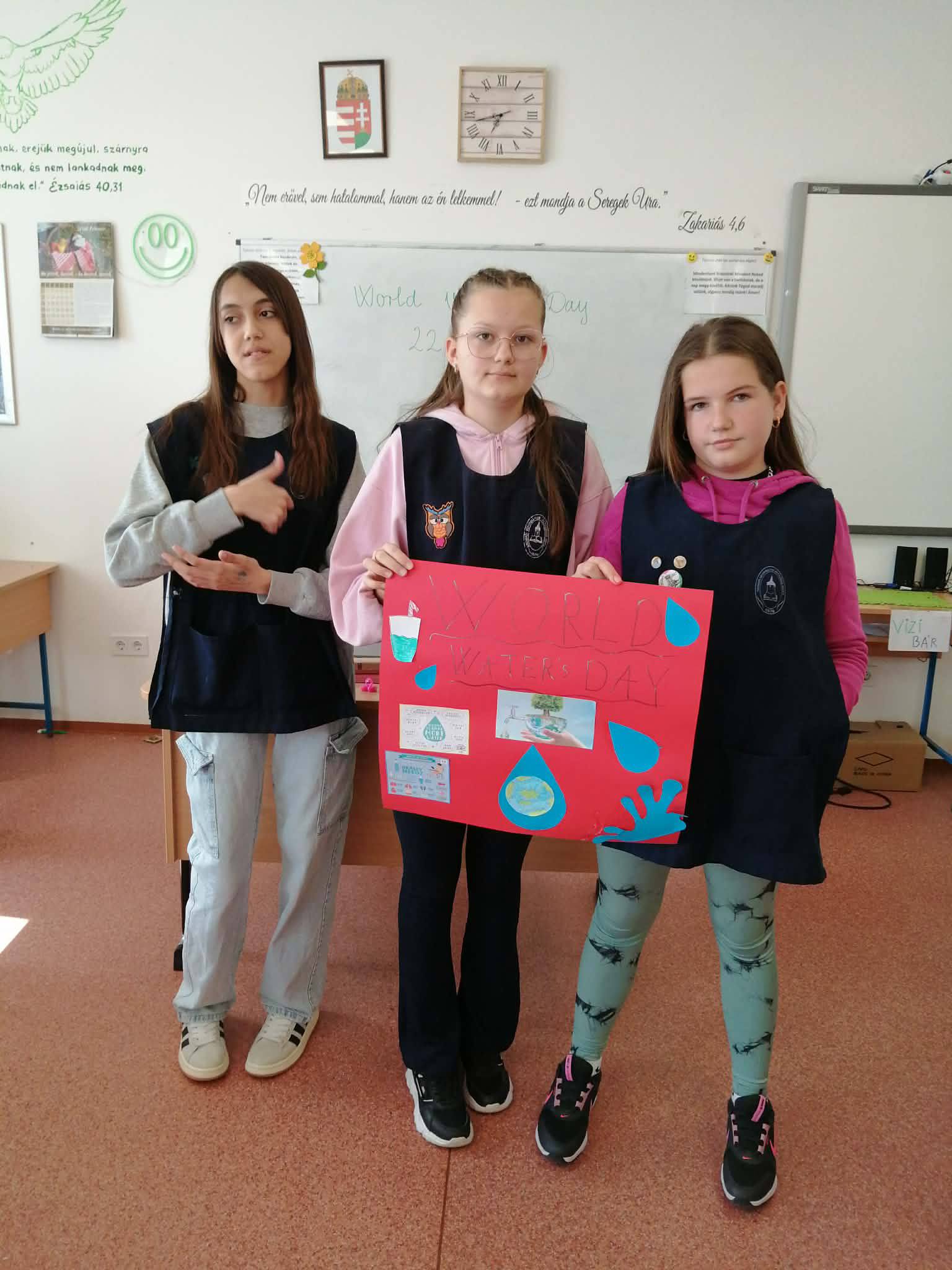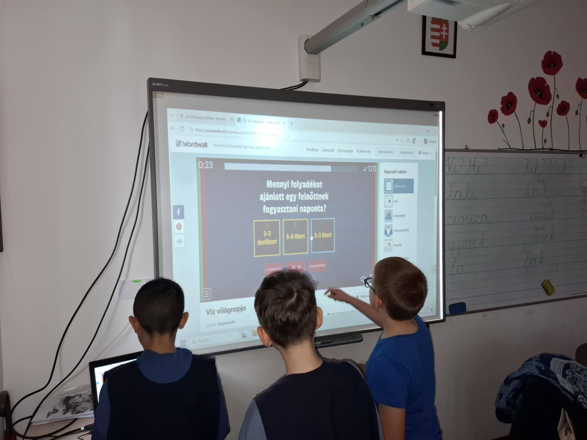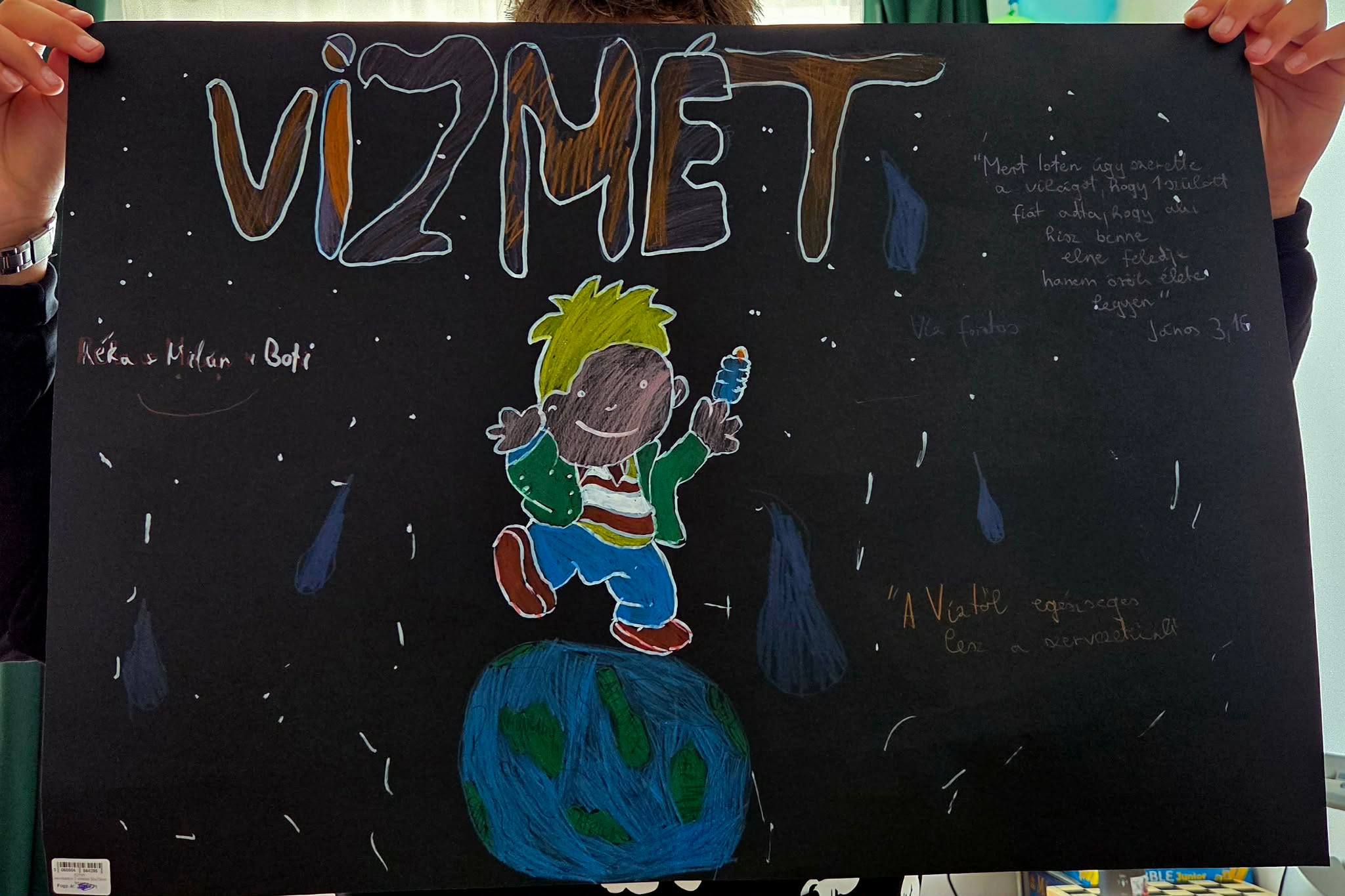 "Aki szomjazik, jöjjön! Aki akarja, vegye az élet vizét ingyen!" Jelenések 22,17 A héten Happy hetet tartottunk az iskolában! Célunk, hogy a vízivást népszerűsítsük intézményünkben, erre pedig több, kreatív feladatot és módszert is bevetettünk. Nagyon fontos, hiszen a gyerekeknél elterjedt a cukrozott üdítőitalok fogyasztása. Digitális feladatokkal, játékos testnevelés órákkal, vízbárral, óra közbeni ivással próbáltuk felhívni a vízivás gyakoriságának fontosságára a diákok figyelmét. Utolsó napon a víz világnapjával egybekapcsolva iskolánk udvarán élő hullámot alkottunk, valamint rajzkiállítást rendeztünk folyosónkon.