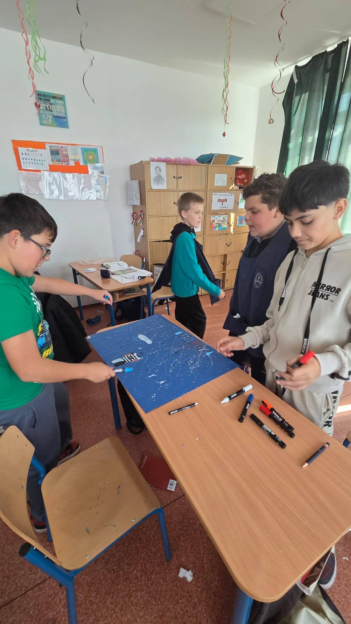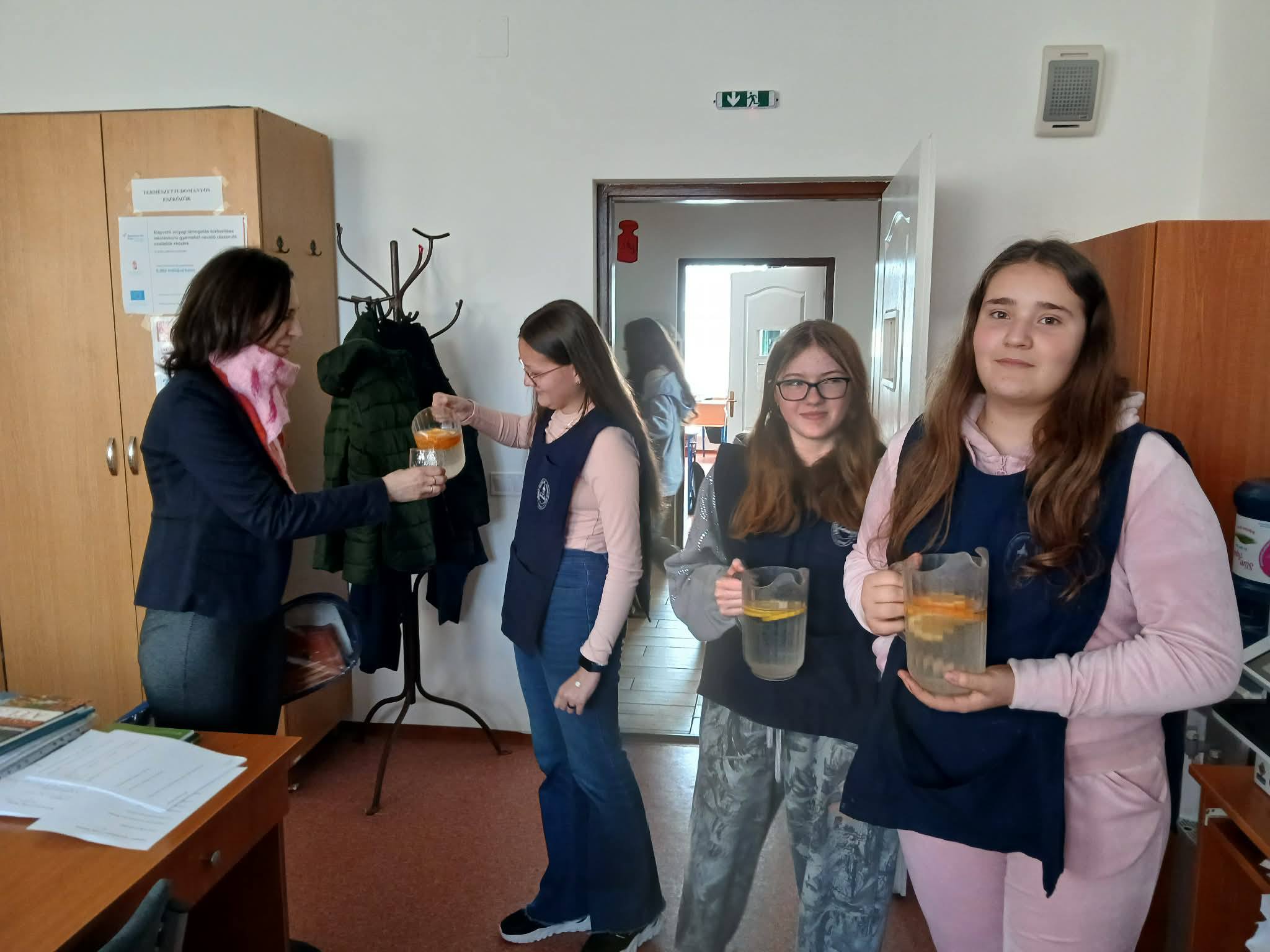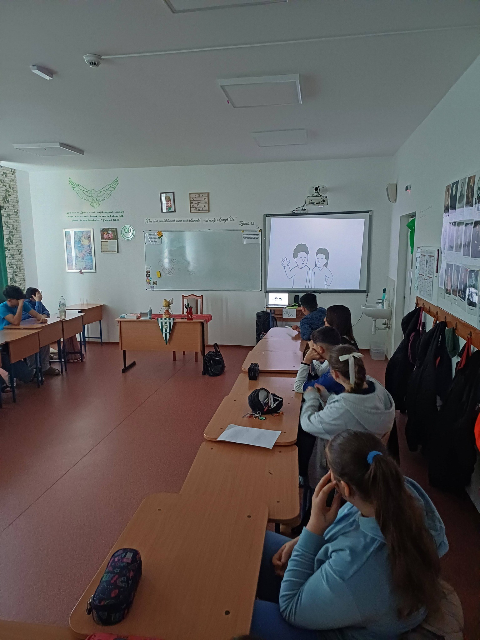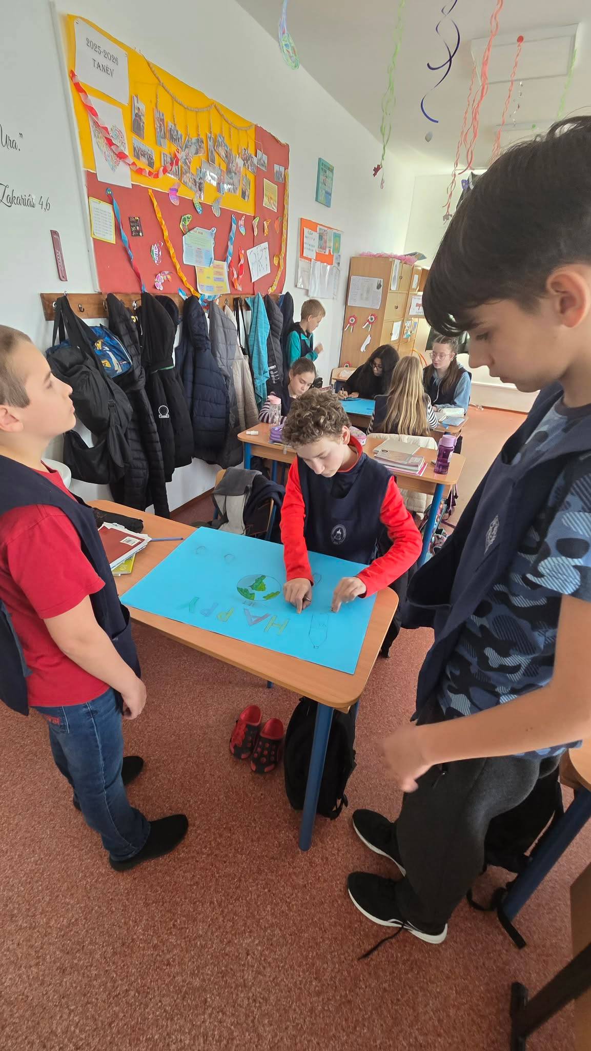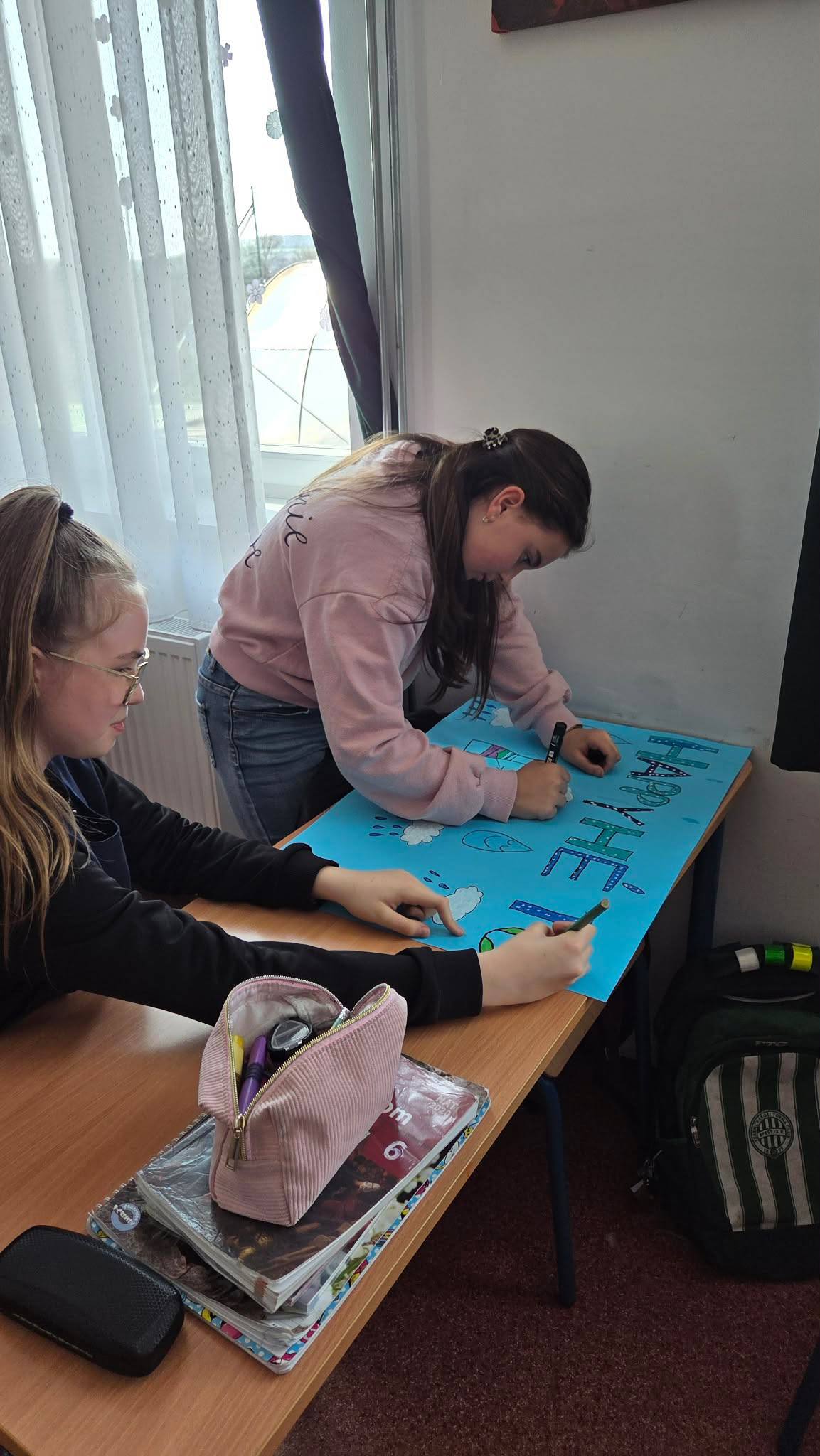 "Aki szomjazik, jöjjön! Aki akarja, vegye az élet vizét ingyen!" Jelenések 22,17 A héten Happy hetet tartottunk az iskolában! Célunk, hogy a vízivást népszerűsítsük intézményünkben, erre pedig több, kreatív feladatot és módszert is bevetettünk. Nagyon fontos, hiszen a gyerekeknél elterjedt a cukrozott üdítőitalok fogyasztása. Digitális feladatokkal, játékos testnevelés órákkal, vízbárral, óra közbeni ivással próbáltuk felhívni a vízivás gyakoriságának fontosságára a diákok figyelmét. Utolsó napon a víz világnapjával egybekapcsolva iskolánk udvarán élő hullámot alkottunk, valamint rajzkiállítást rendeztünk folyosónkon.