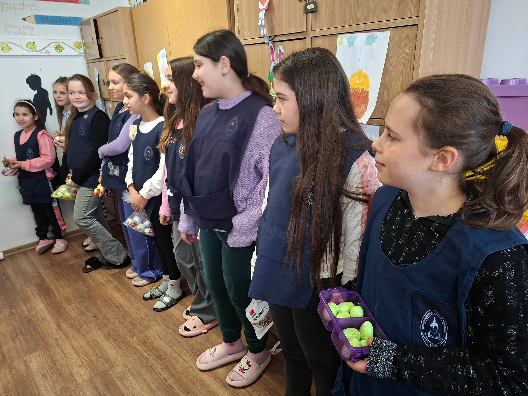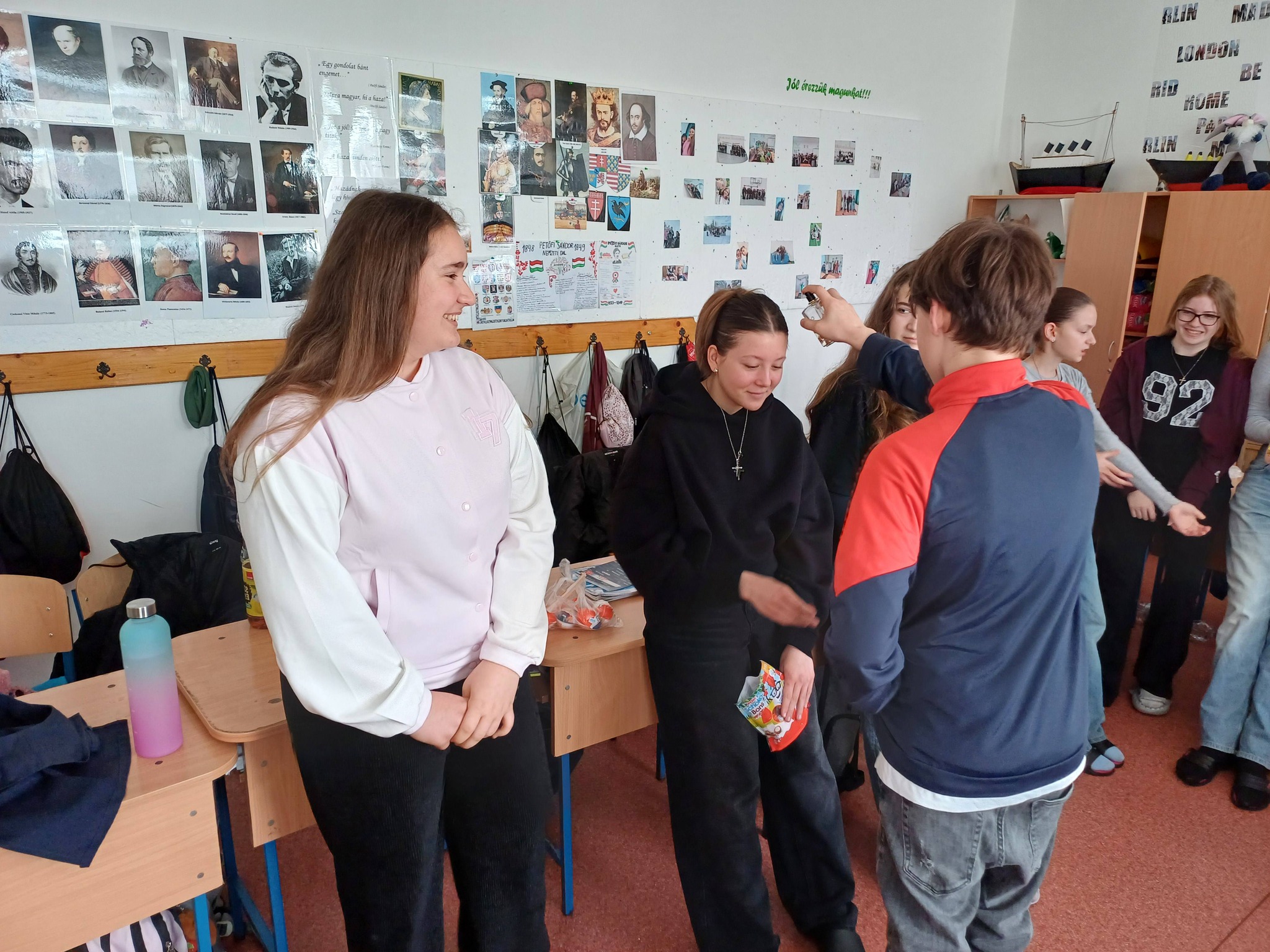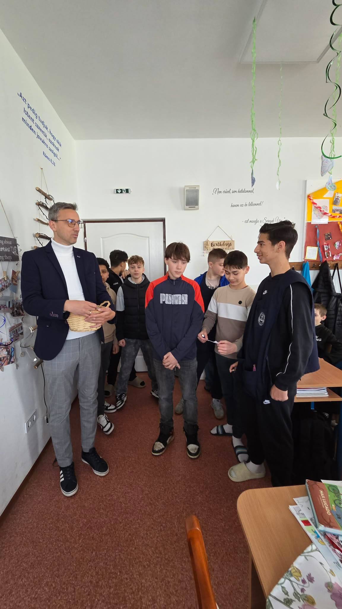 A tavaszi szünet előtti utolsó tanítási napon a fiúk éltek a régi népszokással és meglocsolták az iskola lánytanulóit és nő pedagógusait. Természetesen mindenki megkapta a rózsavízért cserébe a piros tojásokat, csokinyuszikat. A lányok így már nem hervadnak el!