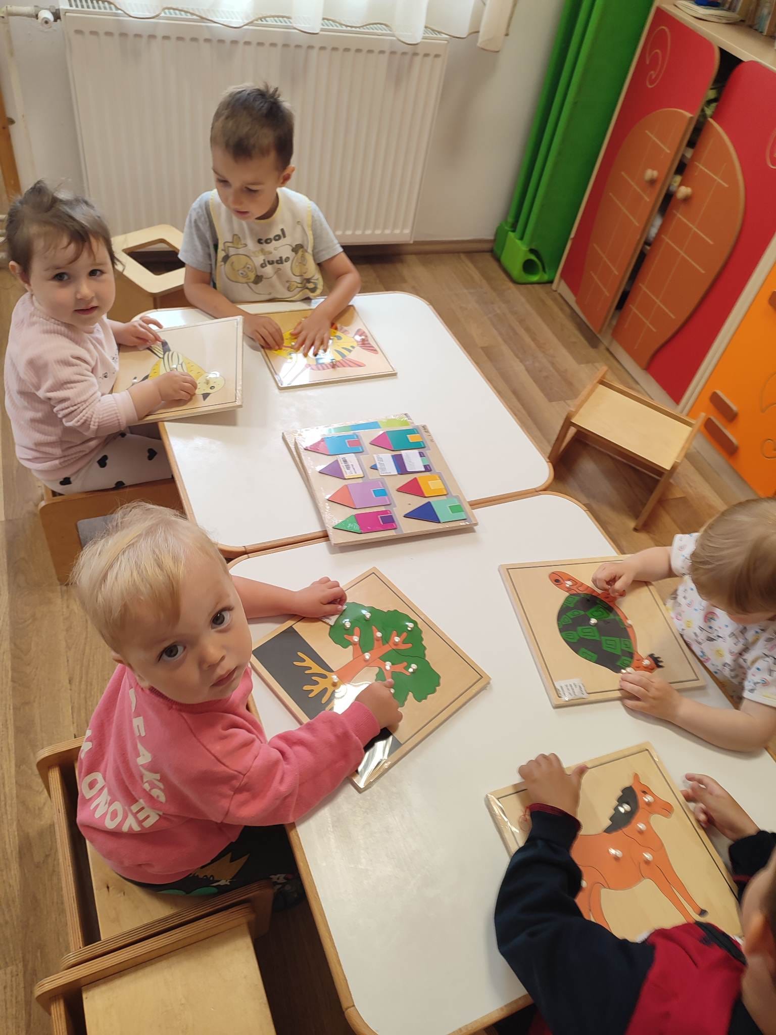 A bölcsődés csoportok fejlesztőjátékokat kaptak. Nagy örömmel vették birtokba.